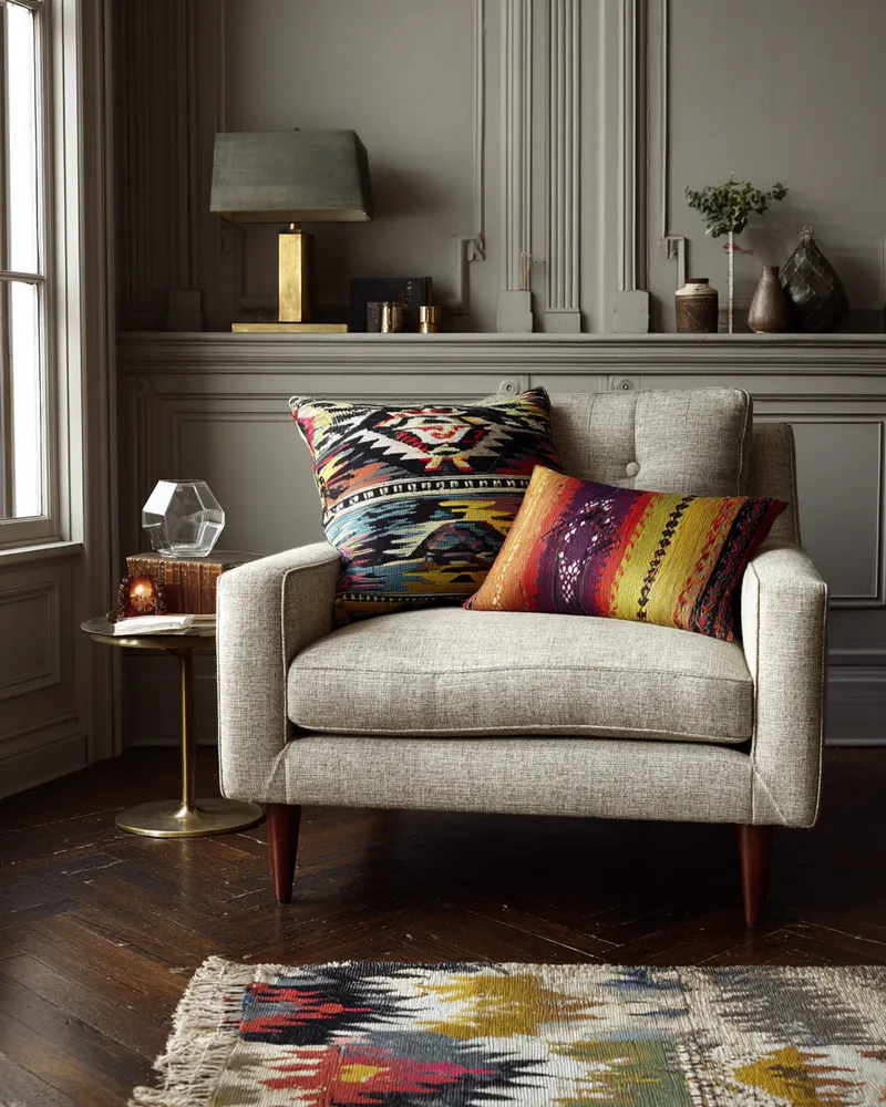 Love organic, flowing forms but want to add a touch of structured definition? Geometric accents are your secret weapon! 🔶 They don't have to be overwhelming; subtle shapes can create a grounding contrast that elevates the entire design. Think a hexagonal mirror on a textured wall, a triangular side table base, or even cushion patterns that feature clean lines. These elements bring a sense of order and intentionality without sacrificing the soft, natural feel. It’s about creating a dialogue between the flowing and the precise. How do you integrate shapes in your home? #GeometricAccentIdeas#OrganicDecorIdeas#ShapeInDesignIdeas#StructuredDecorIdeas#InteriorContrastIdeas#DesignElements#HomeDecor#InteriorStyling#ModernHome#DecorInspiration