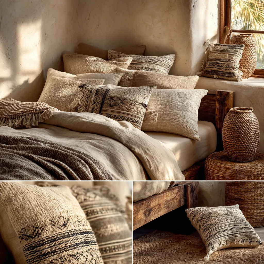 Transform your bedroom into a bohemian sanctuary with the tactile pleasure of natural fibers and woven textiles. 🌿 Comfort and style go hand-in-hand in creating your dream retreat.