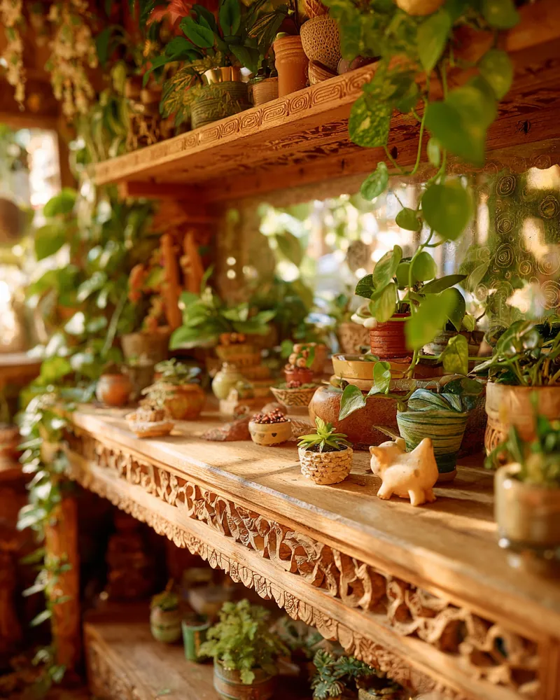 No space is too small for a touch of bohemian botanical charm! Inject life and color into any corner with thoughtful plant styling. Think a trailing Pothos on a bookshelf, a vibrant succulent on a side table, or a small herb garden on a kitchen windowsill. Use eye-catching pots – terracotta, colorful ceramic, or woven baskets – to enhance the boho aesthetic. These little bursts of green not only beautify but also purify your air and uplift your mood. Grow some happiness! 🪴