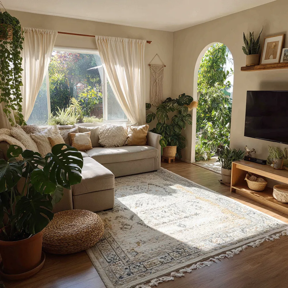Lush Green Sanctuary: Botanical Vibes for Your Boho Living Room! 🌿✨