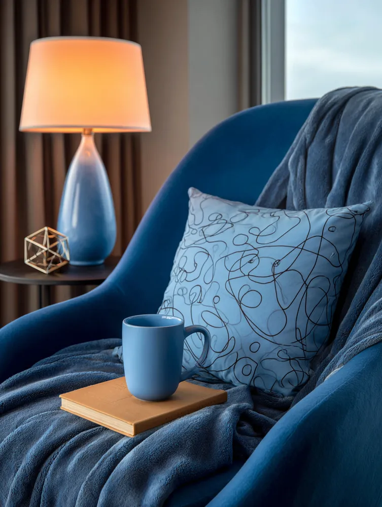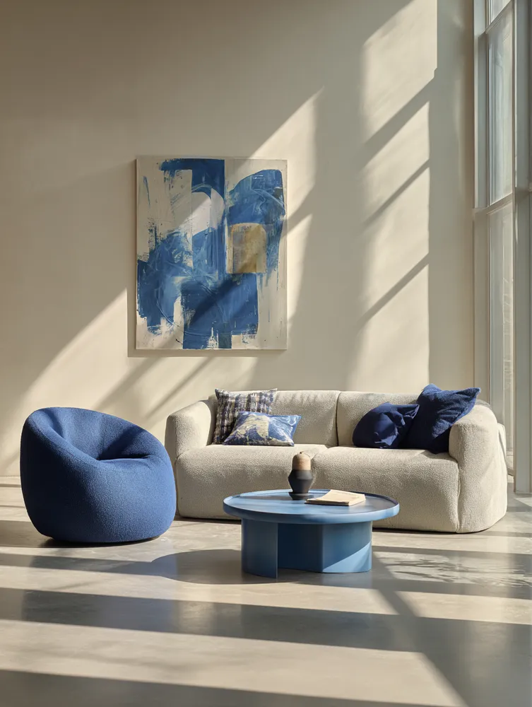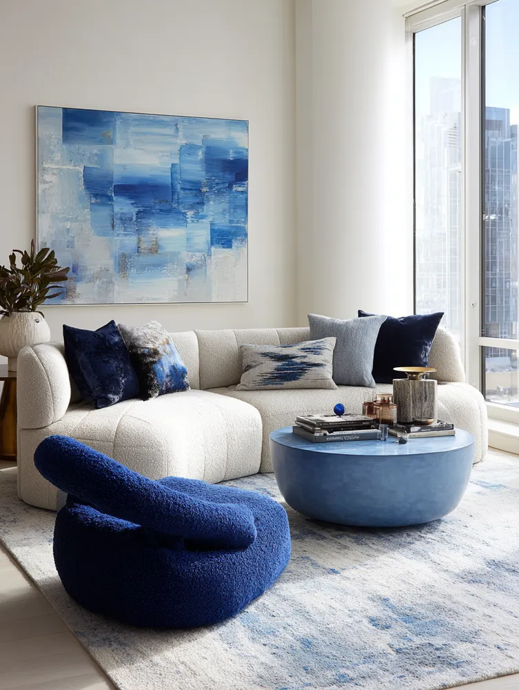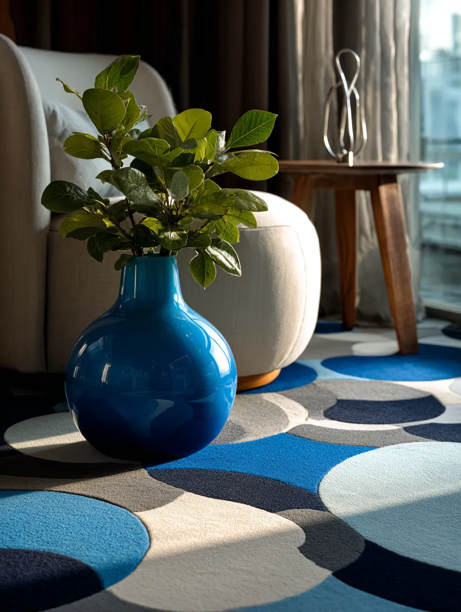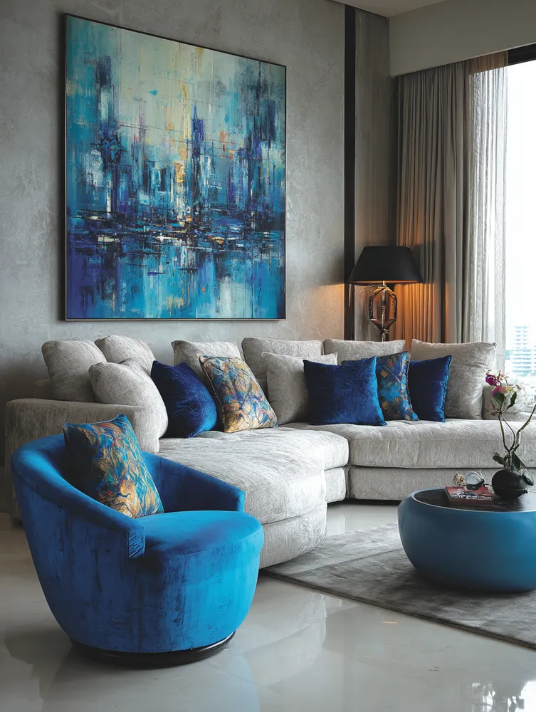 • **Pots & Planters:** Unique pots with abstract patterns or sculptures in blue hues.