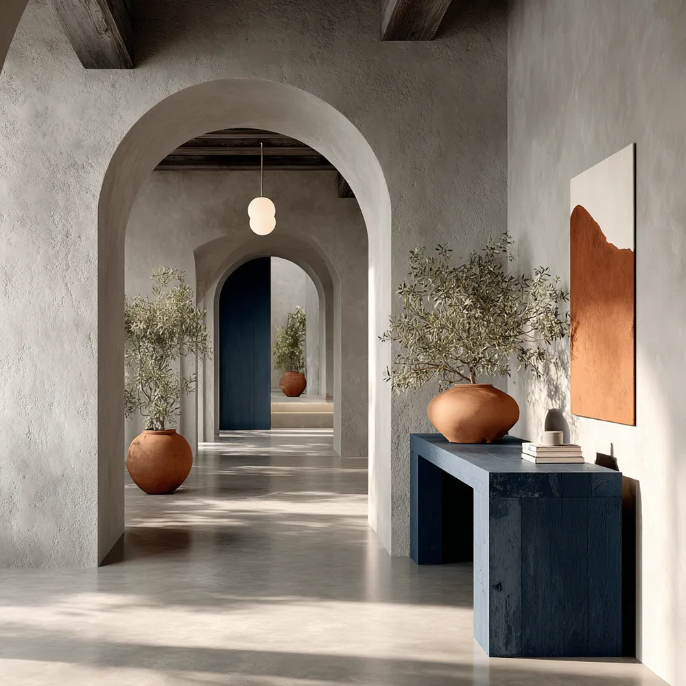 🤎 Terracotta & Deep Blue: Modern Minimalist Entryway Calm!