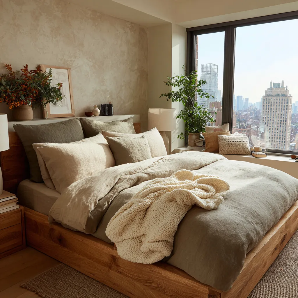• **Textiles:** Linen bedding is breathable and drapes beautifully, enhancing the serene aesthetic. Add wool or cotton throws for texture.