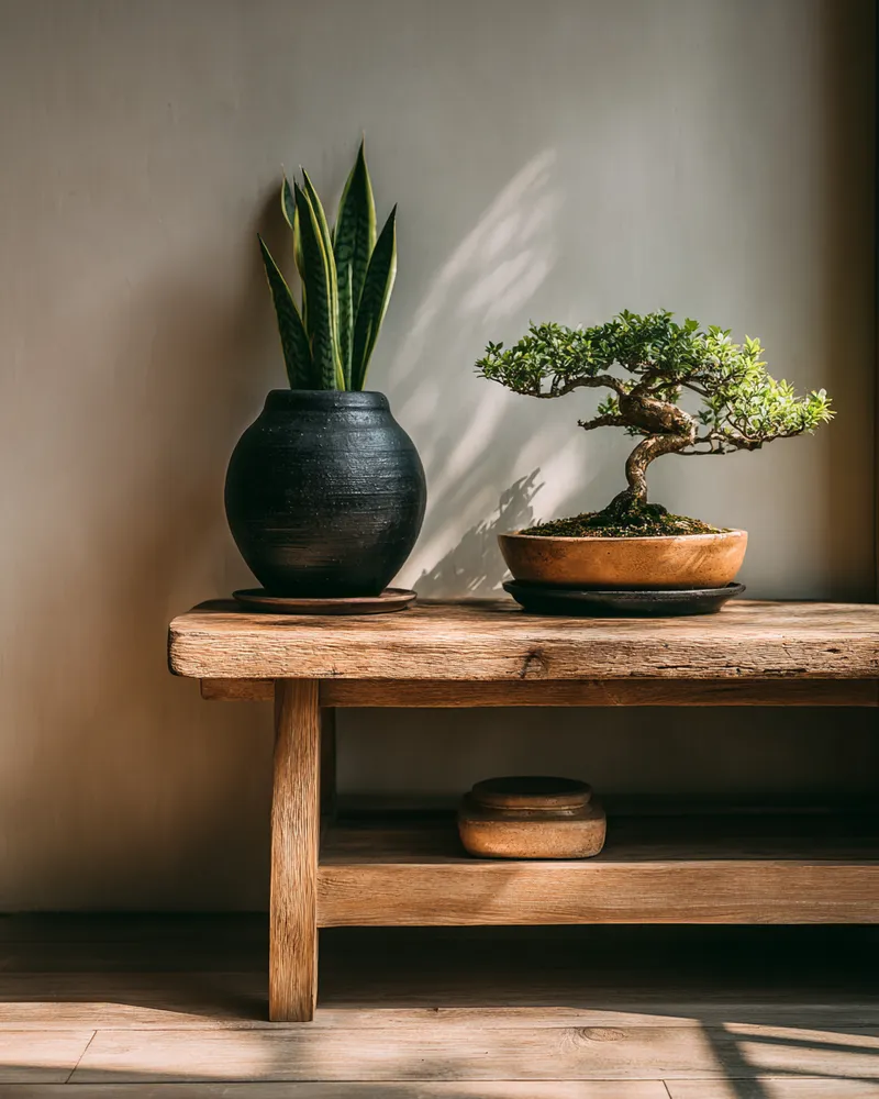 Embrace the power of plants to enhance the calming atmosphere of your Japandi home. Nature’s serenity brought indoors.