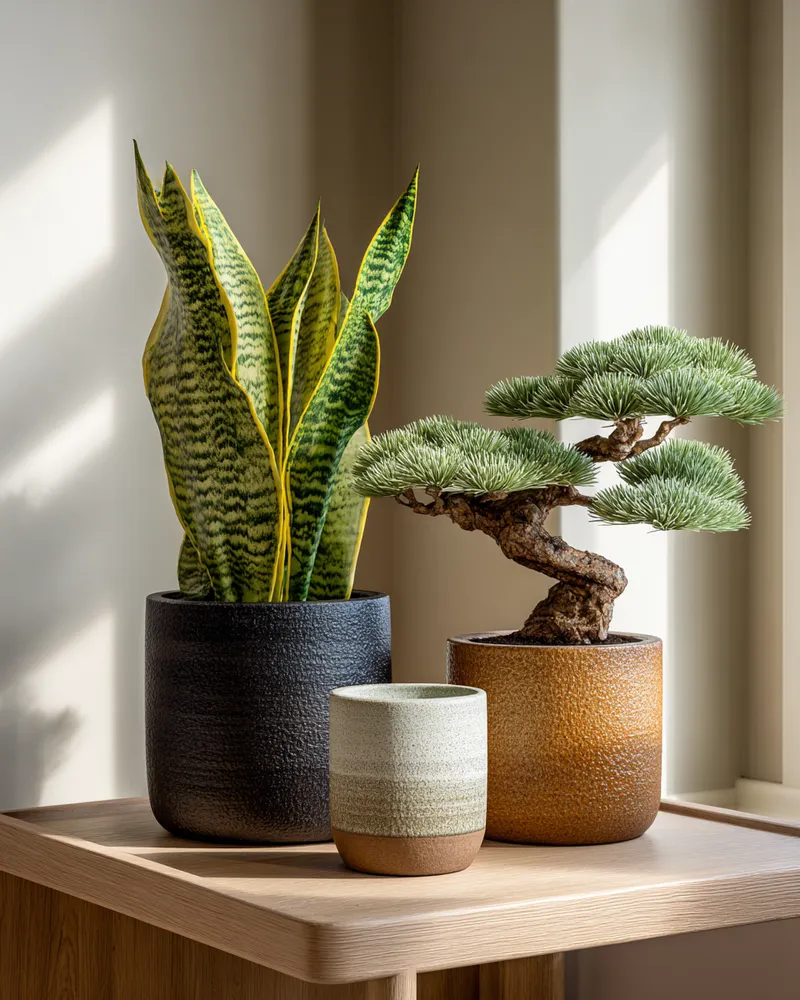 • **Simple & Natural Pots:** Choose planters in muted tones, made from ceramic, terracotta, or woven natural fibers. 🤎