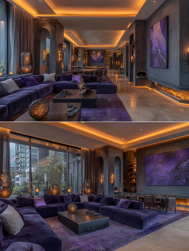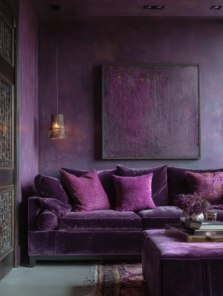 Who says you need a rainbow for impact? Mastering a monochromatic palette is an advanced avant-garde move that creates stunning visual cohesion and depth. Choose a bold hue – like this deep amethyst – and explore its variations in texture, sheen, and form. From velvet sofas to subtle wall finishes, this is about commitment to a singular vision. It’s daring, sophisticated, and creates an immersive environment. Let one color tell your whole story. 💜 Save this for your bold color journey!