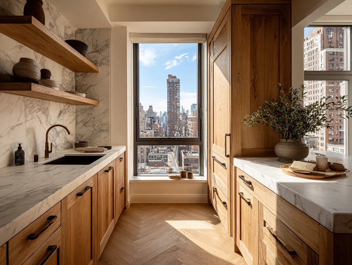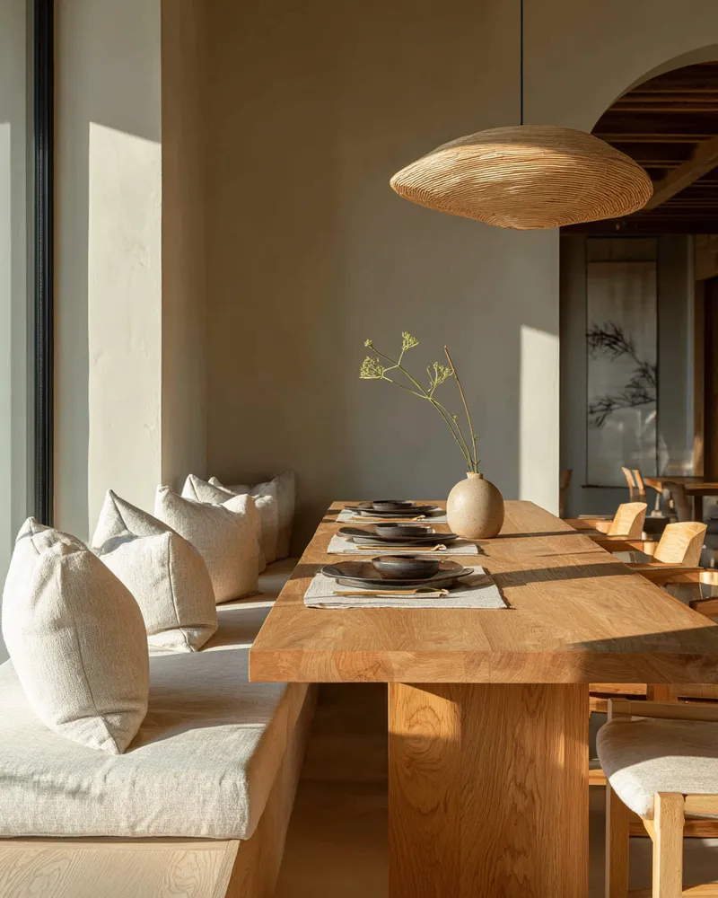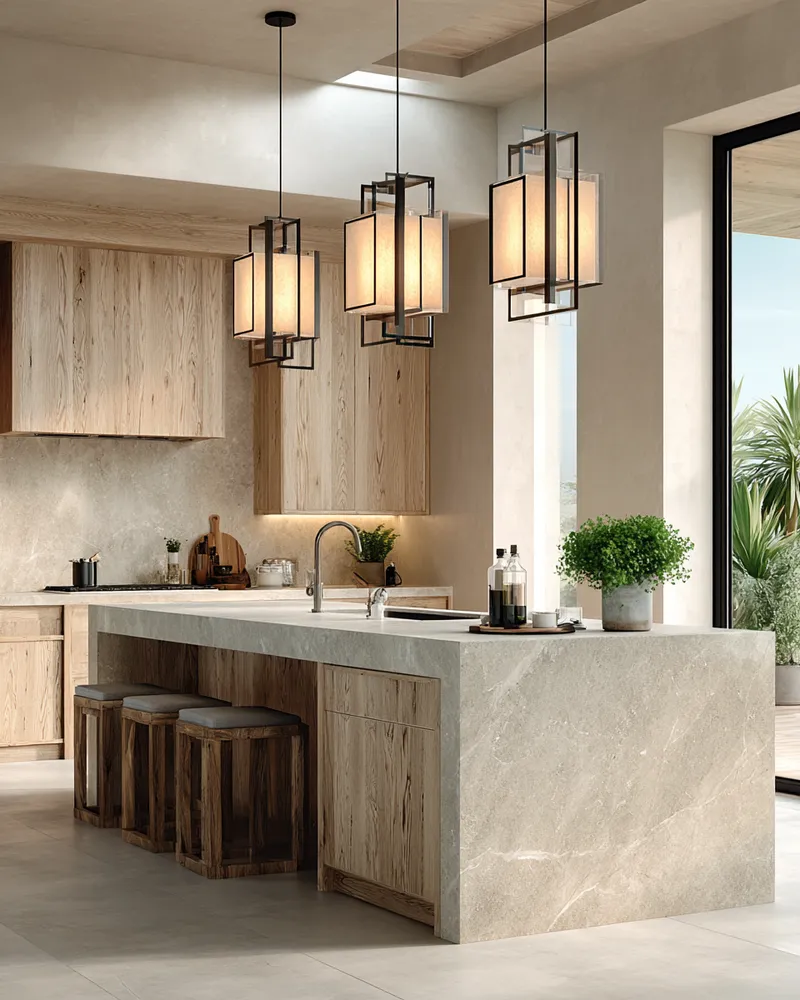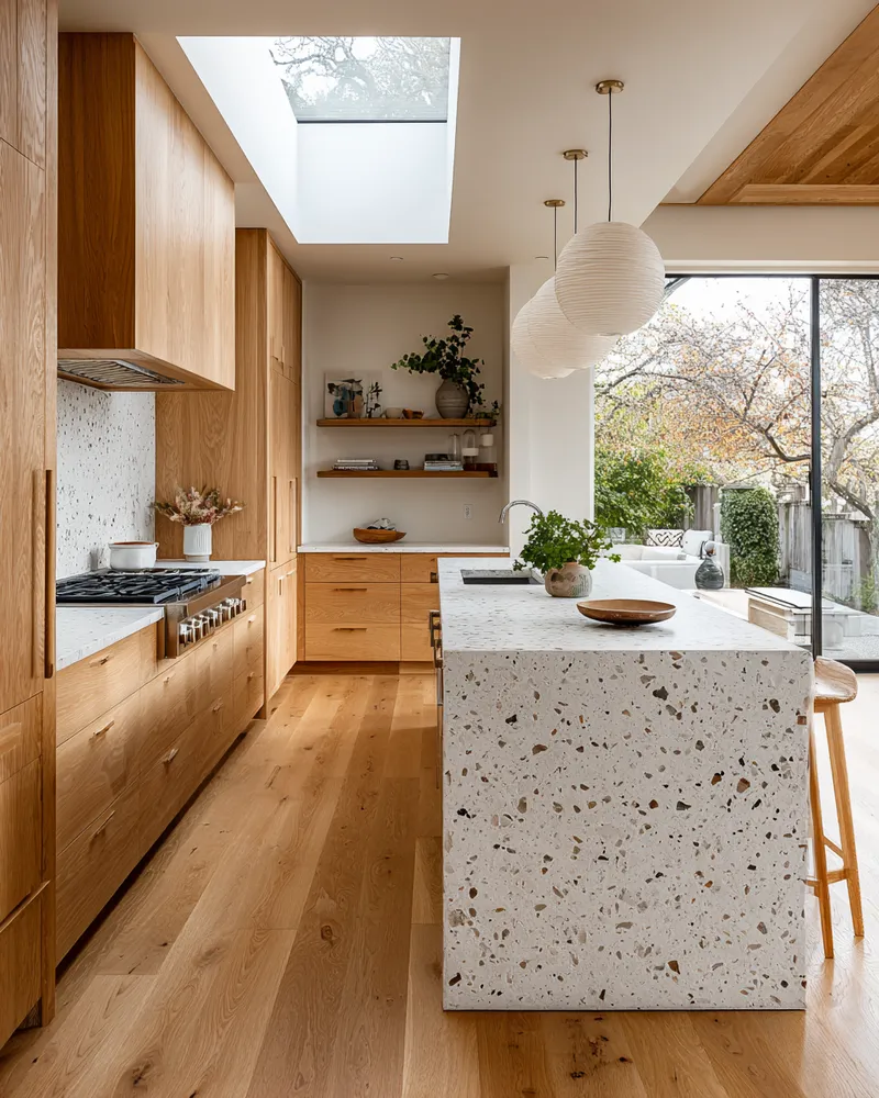 Elevate your kitchen with the serene simplicity of Japandi style, brought to you by 'Eclectic Ecologies'. Focus on natural light and warm wood tones for a calming, functional space. Imagine light oak cabinetry, clean white quartz countertops, and minimal open shelving displaying handcrafted ceramics. A large window with simple blinds allows ample sunlight to flood the area, enhancing the natural beauty of the wood. It’s about creating an uncluttered, peaceful cooking environment. Save this for your harmonious kitchen! 🤍 #JapandiIdeas#KitchenIdeas#NaturalWoodIdeas#MinimalistKitchenIdeas#ScandiJapanIdeas#HomeDecor#KitchenDesign#CalmKitchen#InteriorInspo#WarmWood
