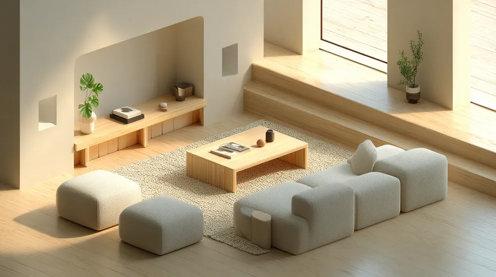 Japandi Inspired Living Room Layout: Flow & Functionality 🍃