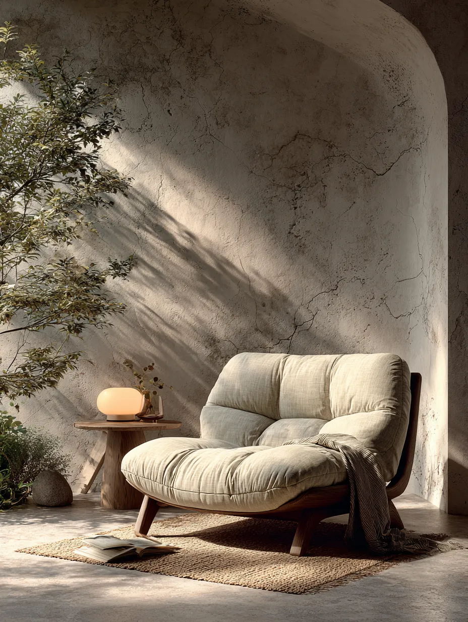 * **Comfortable Seating:** A low-profile armchair or floor cushion in a neutral fabric. ☁️