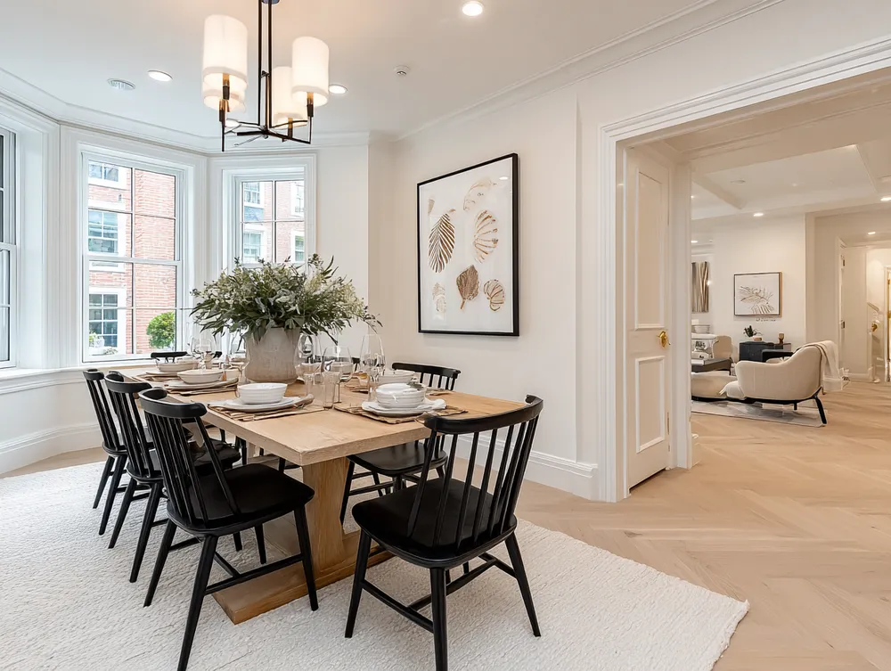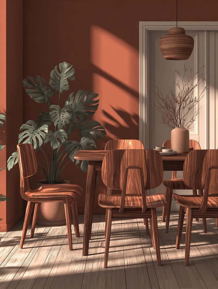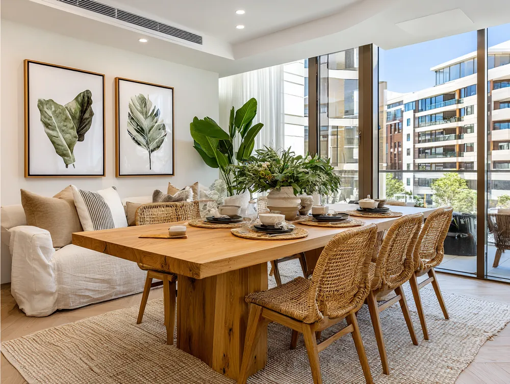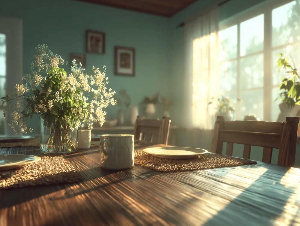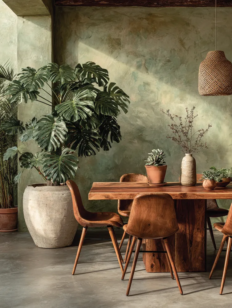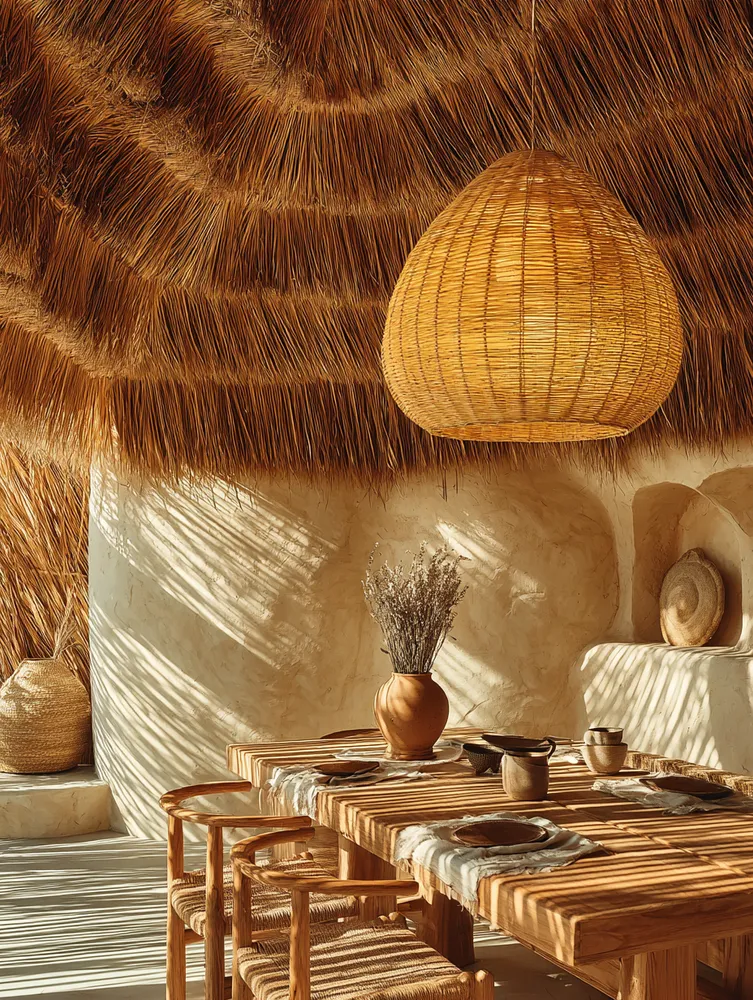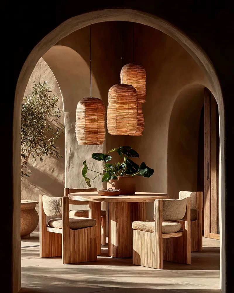 • Natural wood table: Opt for a solid wood dining table, ideally unfinished or lightly treated.