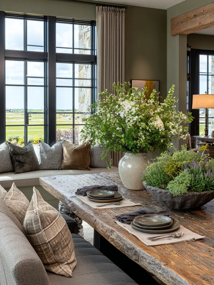 • Organic centerpieces: Simple arrangements of wildflowers, eucalyptus, or bare branches.