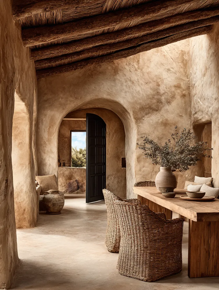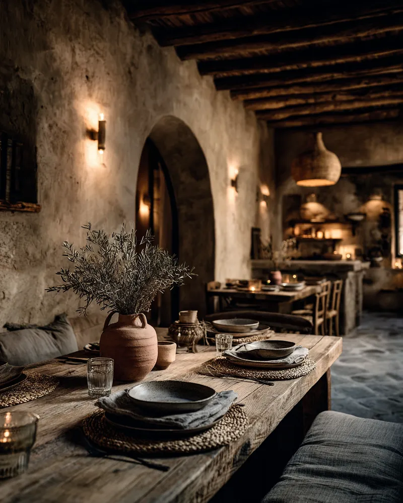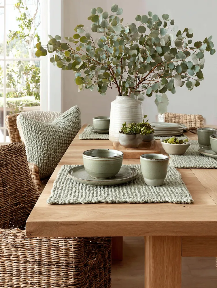 • Minimalist tableware: Ceramic or stoneware dishes in earthy tones.