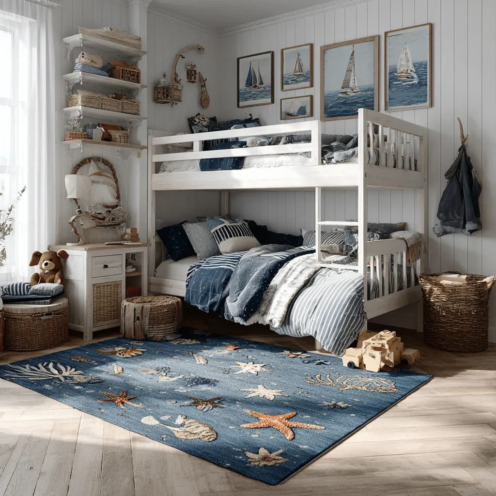 Create a playful and serene space for your little adventurers with charming coastal kids' room decor! 🌟 Think beyond just blue and white; incorporate sandy beiges, soft greens, and playful pops of coral. Use themes like underwater creatures, sailboats, or beach scenes. Durable, natural materials like wood furniture and woven baskets are perfect for kids' rooms. Soft lighting and cozy textiles make it inviting. A fun rug with waves or sea creatures adds a playful touch. Make their room a place of imagination and comfort! Save for your little one's room! ⚓️ #CoastalKidsRoomIdeas#KidsRoomIdeas#ChildrensRoomIdeas#NauticalKidsRoomIdeas#PlayroomIdeas#InteriorDesign#HomeDecor#KidsDecor#SeasideKids#OceanTheme