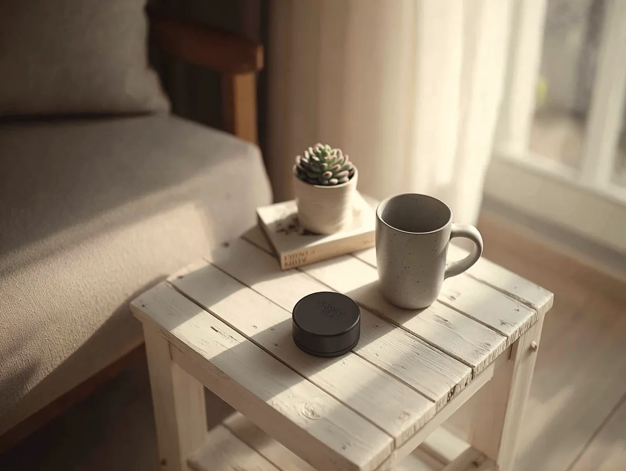 Your side table can be a small sanctuary in a Japandi home. Keep it minimal and functional. A simple natural wood or matte black side table is ideal. Style it with essentials like a book, a small ceramic coaster, a minimalist mug, and perhaps a very small plant or a calming scented candle. The key is intentional placement and uncluttered surfaces that invite peace. 🍃 Save this for your calming side table inspo!