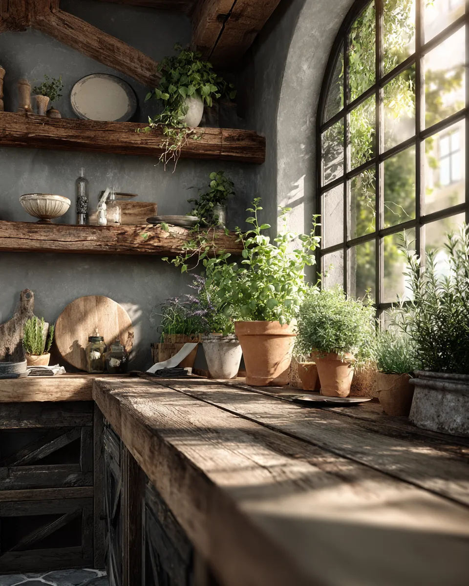 It creates a more inviting and refreshing cooking and dining experience. Save this for your revitalized kitchen inspo! #BiophilicKitchenIdeas#KitchenGardenIdeas#IndoorHerbIdeas#NaturalKitchenIdeas#KitchenDecorIdeas#UrbanJungleKitchen#HomeCooking#GreenKitchen#KitchenInspo#BiophilicDesign