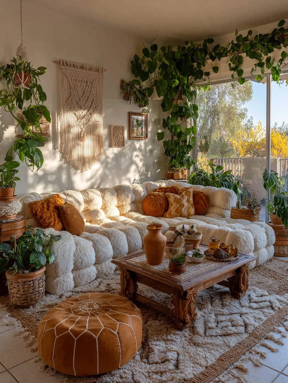 Boho Meets Earth: Natural Elements for a Cozy Living Room 🪴
