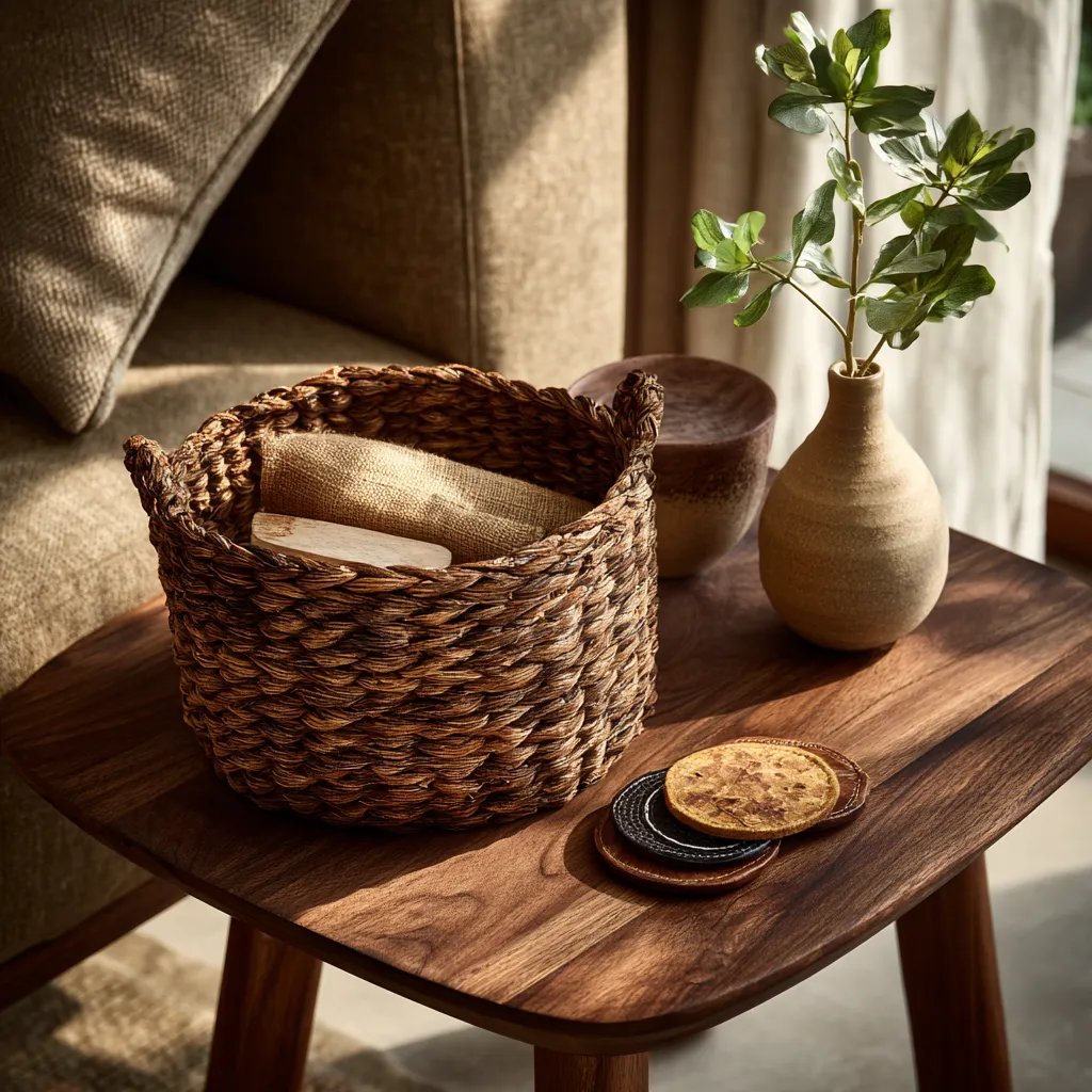 Elevate your side tables with the irresistible charm of woven baskets. 🌿 These versatile pieces are perfect for corralling remotes, magazines, or coasters, keeping your surfaces tidy and stylish. Choose from various materials like rattan, seagrass, or jute for different textures. Add a small plant or decorative object on top for a finished look. It's a simple yet effective way to introduce warmth and organic style into any room. A little woven touch goes a long way for beautiful, organized living! 🛋️ #SideTableIdeas#WovenBasketIdeas#RattanSideTableIdeas#DecorBasketIdeas#HomeStylingIdeas#InteriorDecor#TableStyling#NaturalTouches#OrganizedHome#ChicDecor
