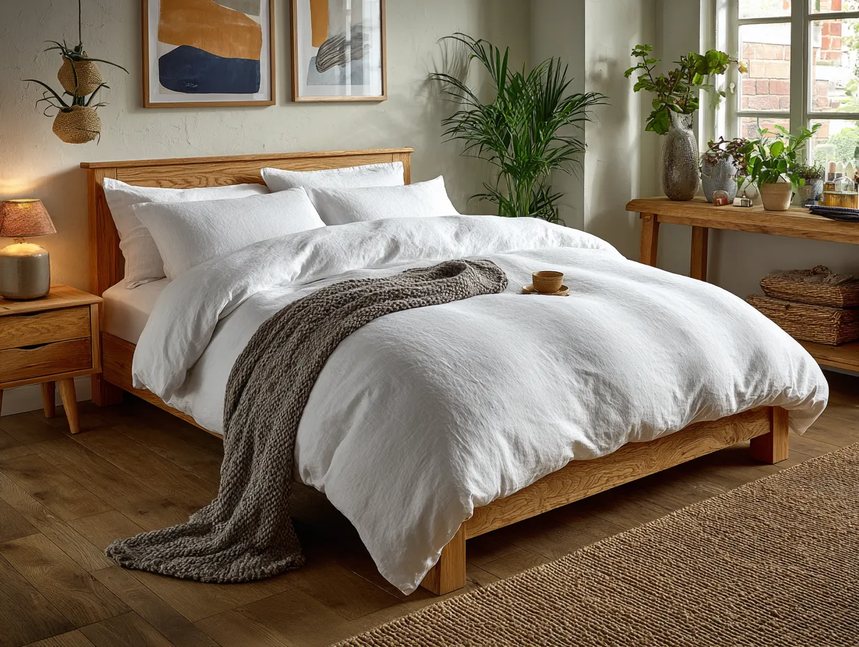 * **Layered Textiles:** Luxurious linen bedding, chunky knit throws, and soft rugs for tactile comfort.