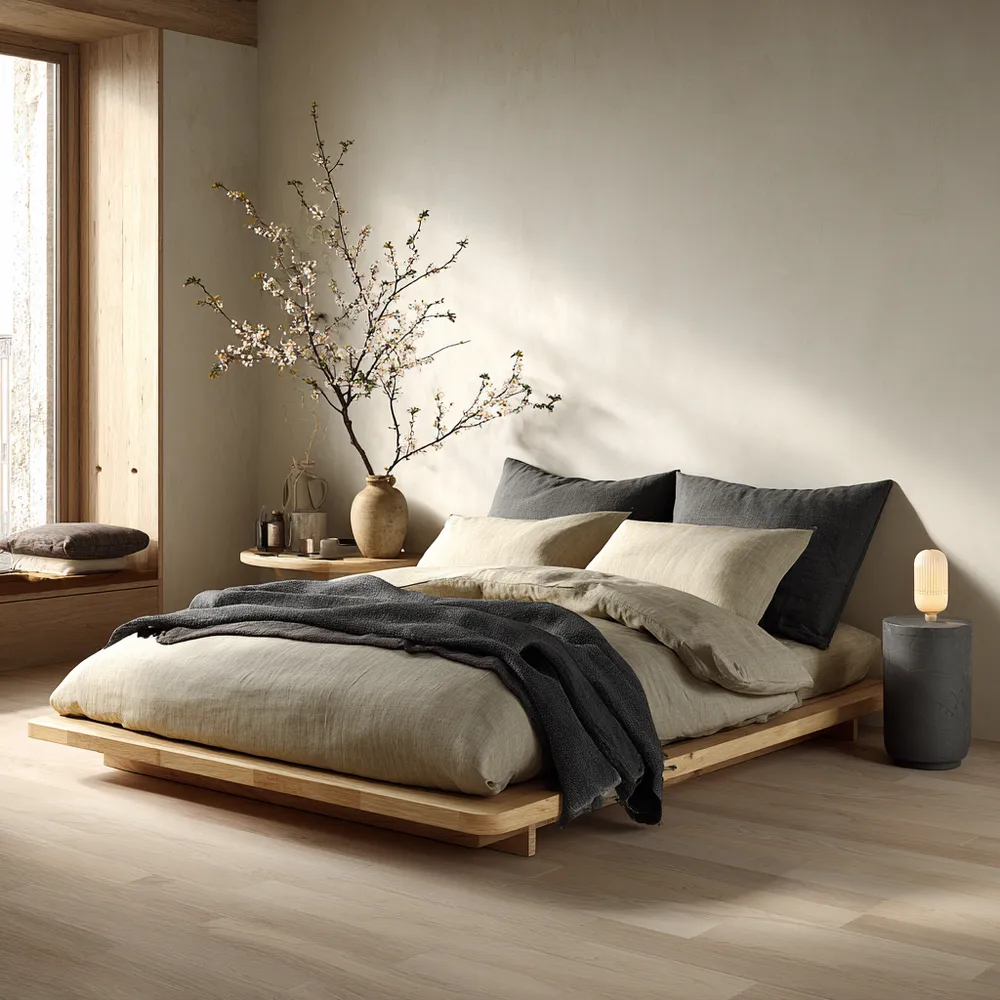 Layered Textures: Creating a Serene Japandi Bedroom Oasis 🛌☁️