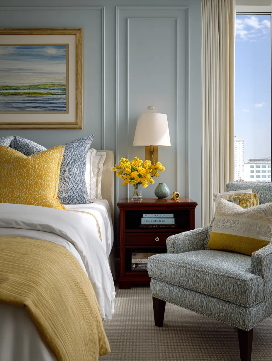 Elevate Your Bedroom with These Serene Blue & Yellow Hues! ๐๐