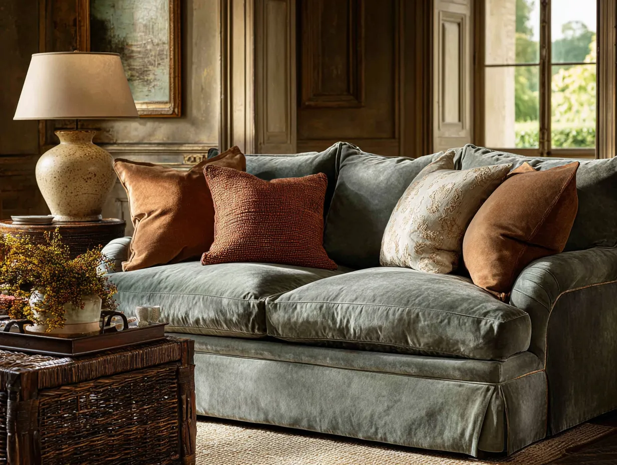 * **Seating:** Soft, inviting sofas and armchairs upholstered in materials like velvet, linen, or boucle.