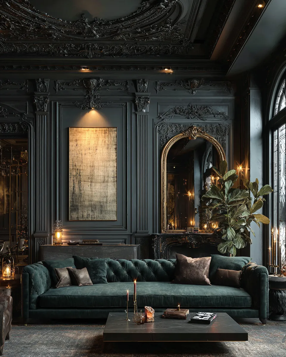 🛋️ **Statement Furniture:** A velvet sofa or classic armchair in rich tones is a must.
