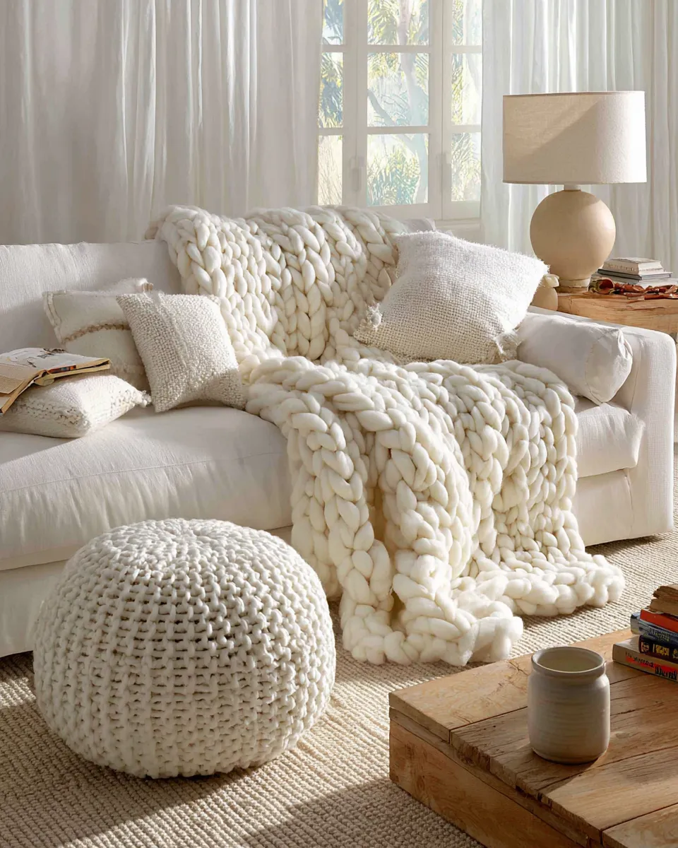 Texture Play: The Cozy Power of Chunky Knits in a Neutral Living Room 🧶🛋️