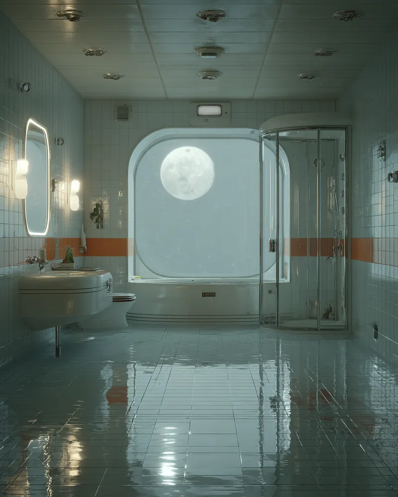 The Space Age Serenity: 60s Retro Bathroom Bliss! 🚀