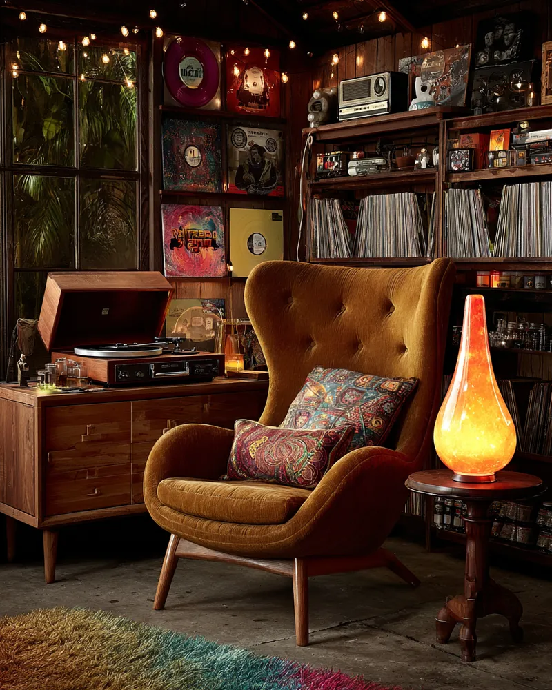 Ready to infuse your living space with the groovy spirit of the 70s? This era is all about comfort, warmth, and bold yet earthy tones. Let's capture that iconic look: * **Color Palette:** Think mustard yellow, burnt orange, avocado green, and rich browns. * **Textures:** Plush shag carpets, velvet upholstery, and macrame wall hangings are key! * **Furniture:** Look for low-slined sofas, statement armchairs, and round coffee tables. * **Accessories:** Don't forget potted plants, vintage lava lamps, and geometric patterns. It's all about creating a truly inviting and conversation-starting room. What's your favorite 70s decor element? 👇
