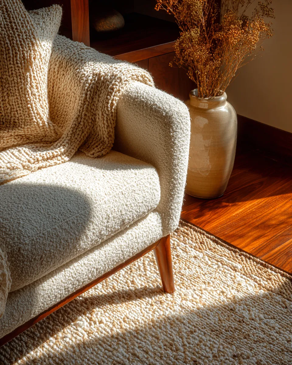 🛋️ Bouclé or textured upholstery on chairs and sofas