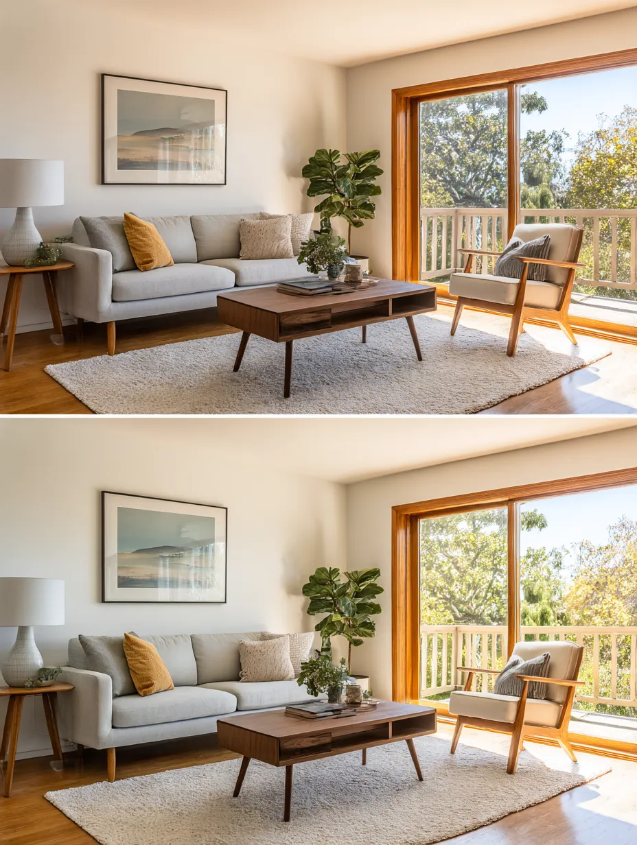 Elevate Your Space: Mid-Century Meets Minimalist Living Room 🪴