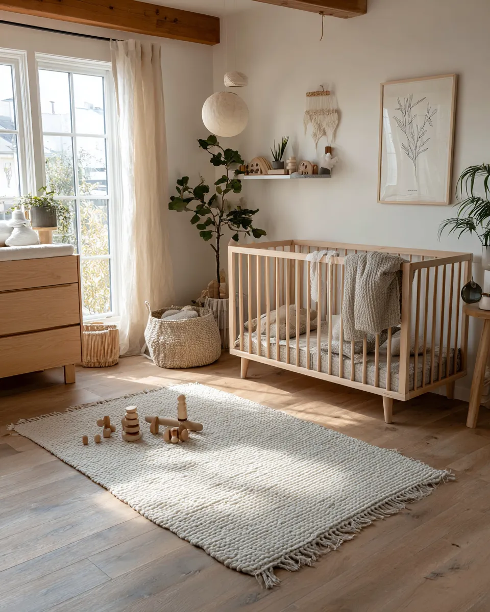 Focus on natural wood cribs and changing tables with clean lines. Use organic cotton or linen bedding in soft, muted tones. Minimalist decor, perhaps a few subtle wooden toys or nature-inspired wall art, adds a gentle touch. Ensure plenty of natural light.