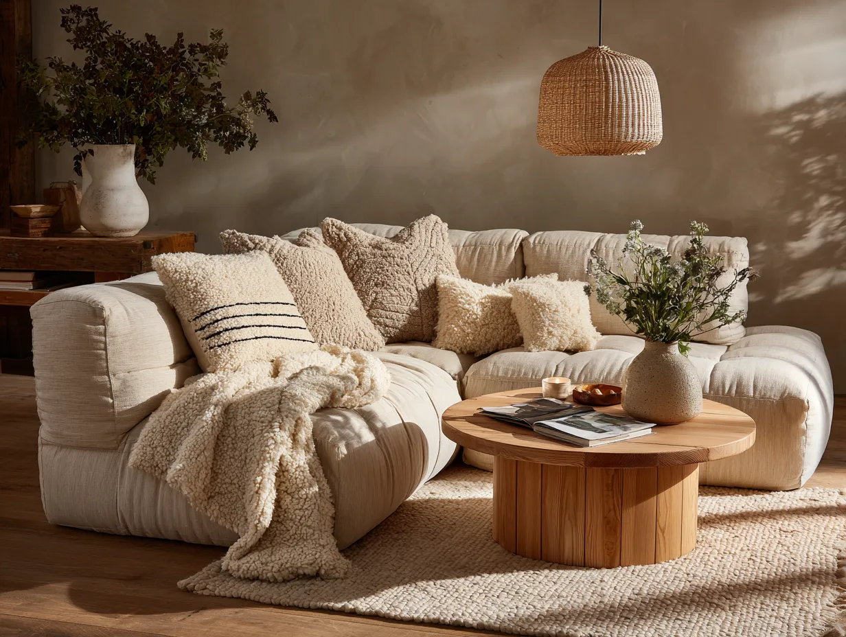 • **Layered Textures:** Mix linen throws, chunky knit cushions, and soft rugs.