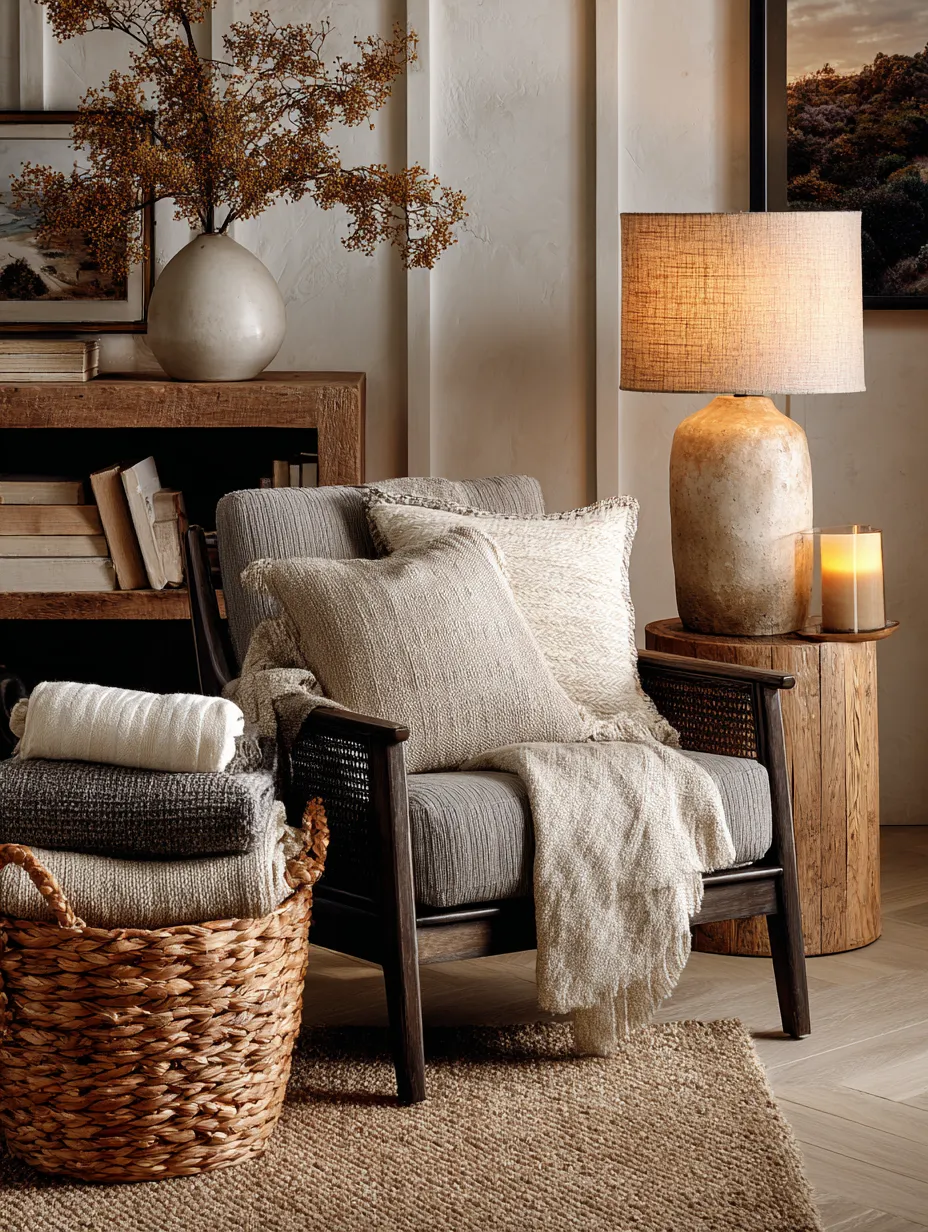 One of the most beautiful aspects of Japandi design is the embrace of natural materials and textures. Woven elements add instant warmth and a tactile connection to nature.