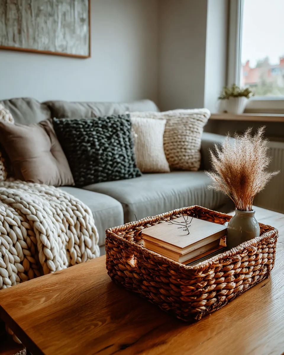 * **Natural Materials:** Introduce woven baskets, rattan accents, or a chunky knit throw. 🧶