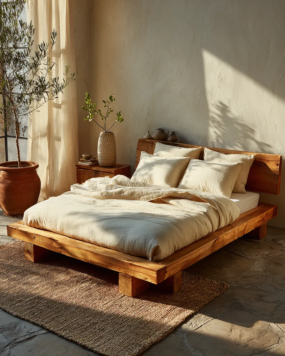 Creating a restorative space is an art. How are you incorporating nature into your home design? #JapandiBedroomIdeas#BedroomInspoIdeas#NatureInspiredDesignIdeas#HomeSanctuaryIdeas#MinimalistBedroomIdeas#JapandiStyle#InteriorDesign#BedroomDecor#NaturalMaterials#SereneHome