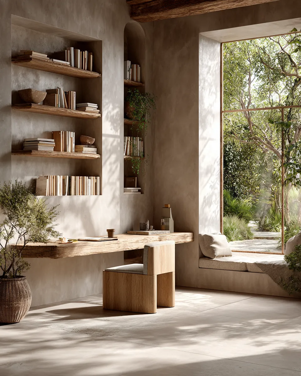 Save this for your inspiring workspace! #JapandiHomeOfficeIdeas#HomeOfficeIdeas#MinimalistOffice#ProductiveSpaces#WorkspaceInspo#NaturalWoodDesk#InteriorDesign#ArtfulInteriors#HomeDecor#DesignTips