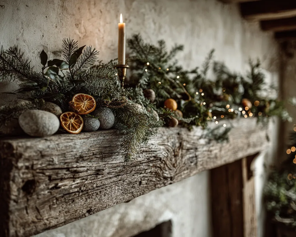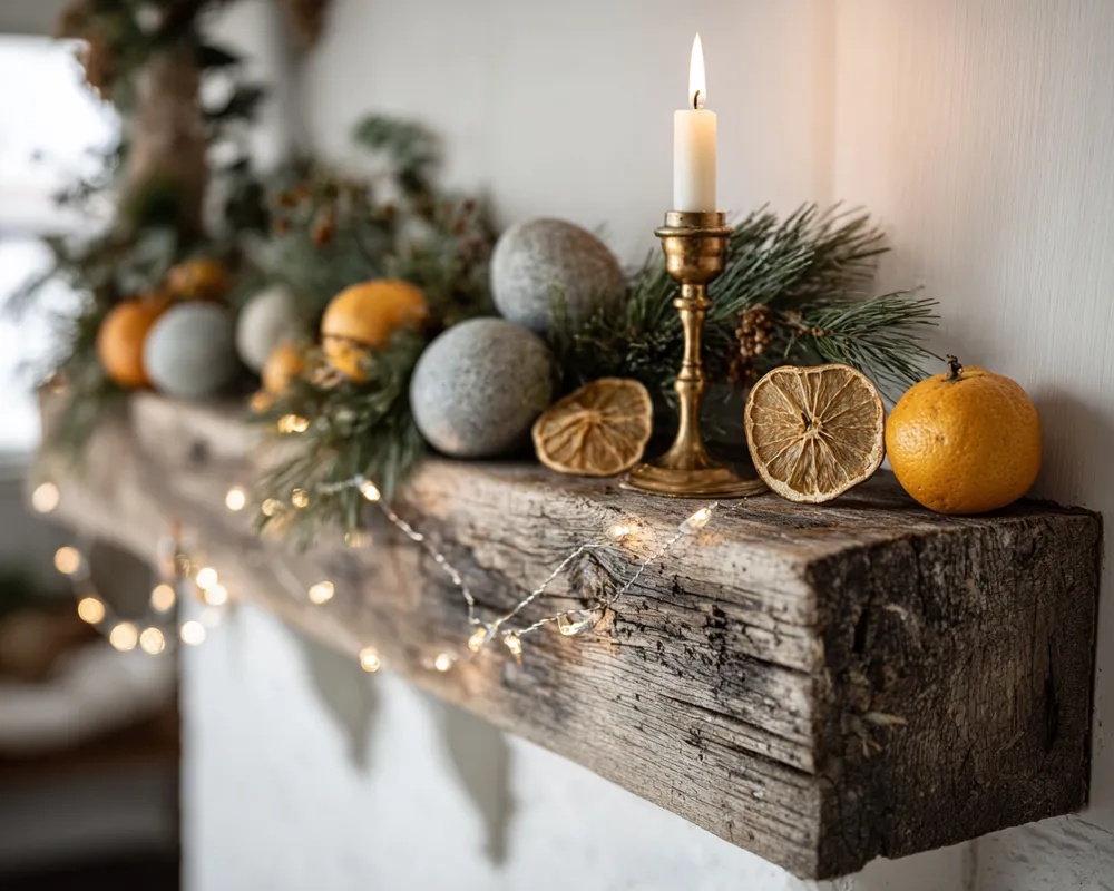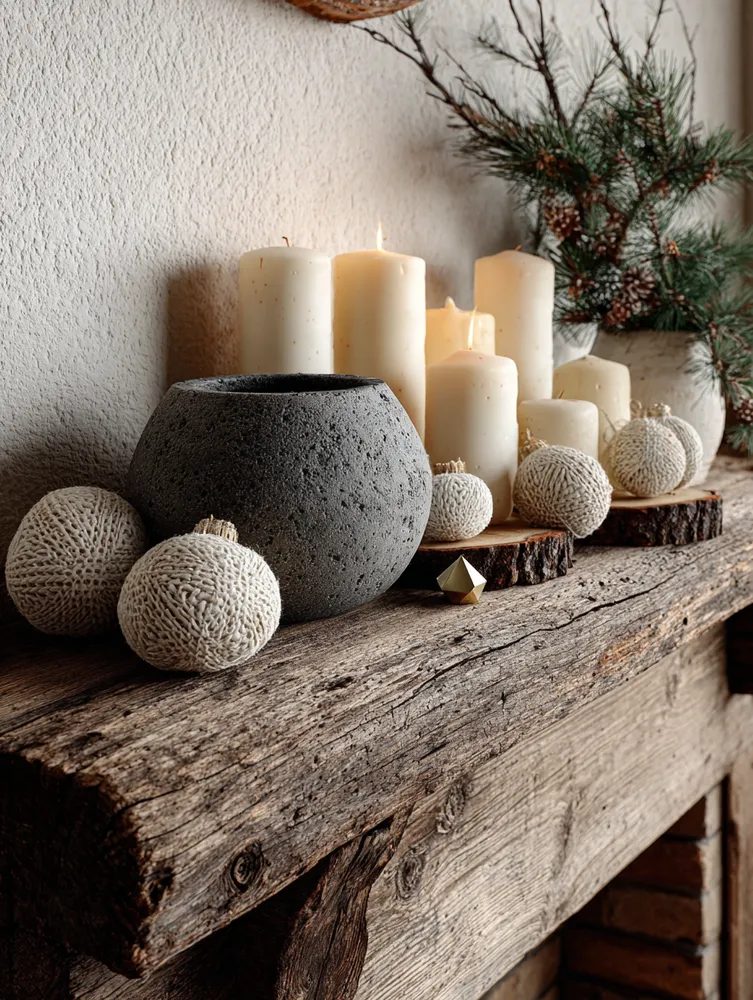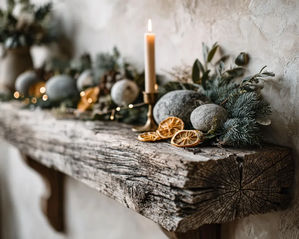 Minimalist Christmas Mantel: Stone, Wood & Subtle Sparkle 🌟🪵