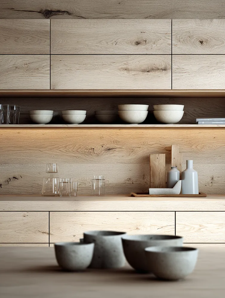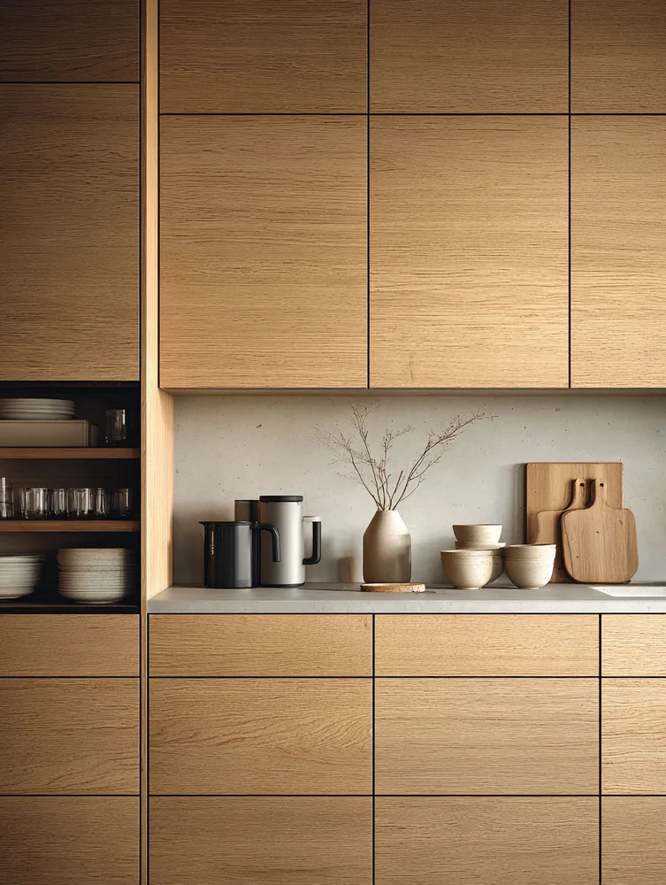 In Japandi kitchens, materials tell a story of simplicity, nature, and craftsmanship. Let's explore cabinet essentials.