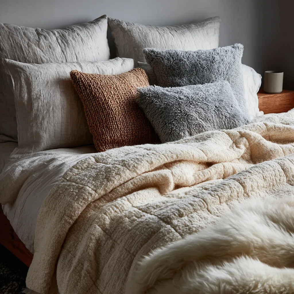 Soft Textures for a Cozy Scandinavian Bedroom Sanctuary 🐑❄️