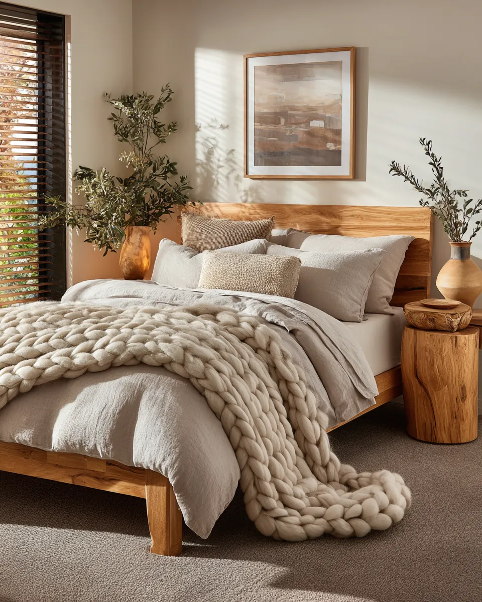 * **Natural Wood Accents:** A simple wooden bed frame or bedside table adds warmth without clutter.