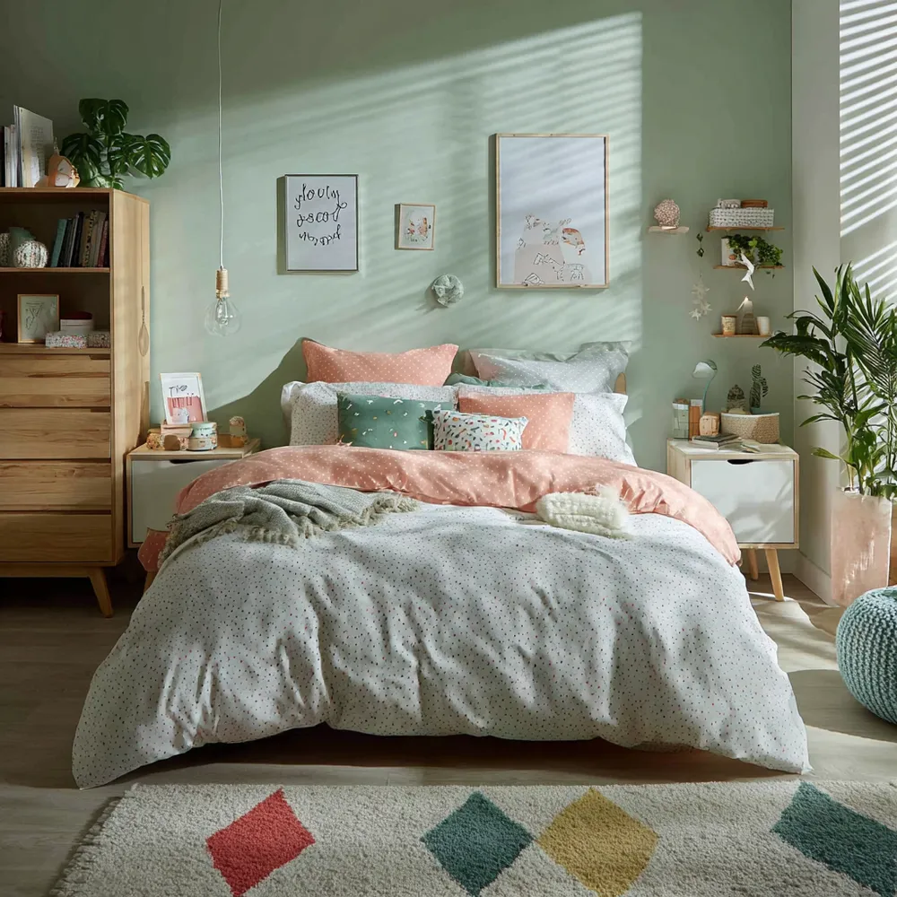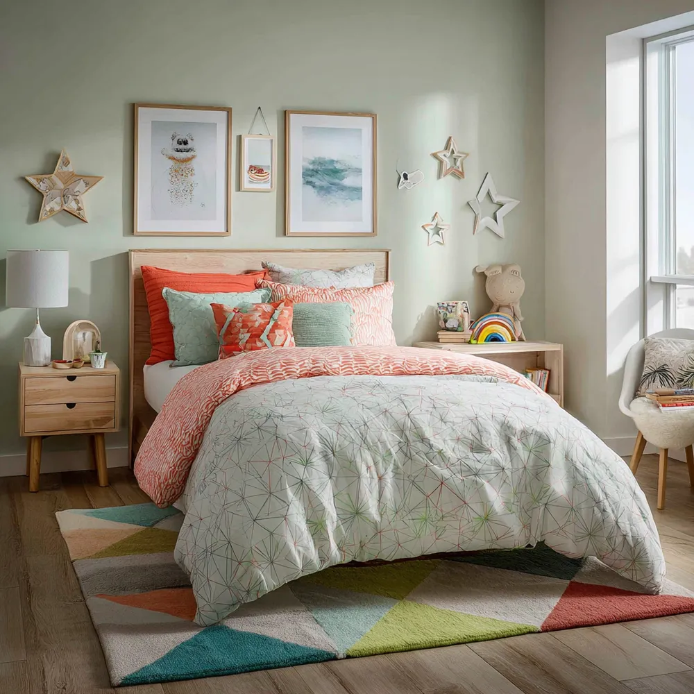 🧡 Coral & Mint Green: Playful & Energetic Kids' Room Fun!
