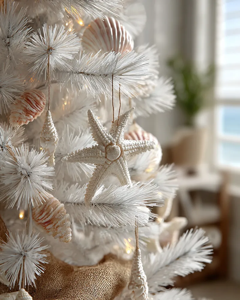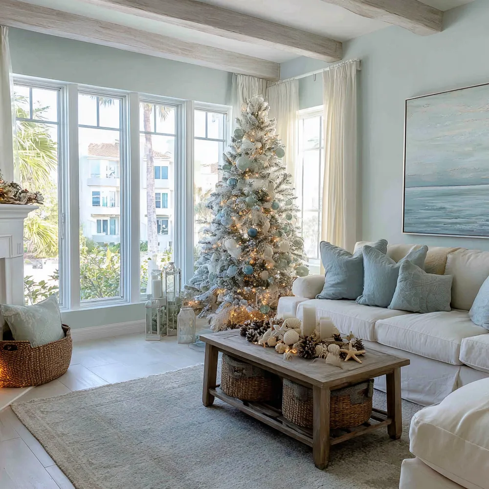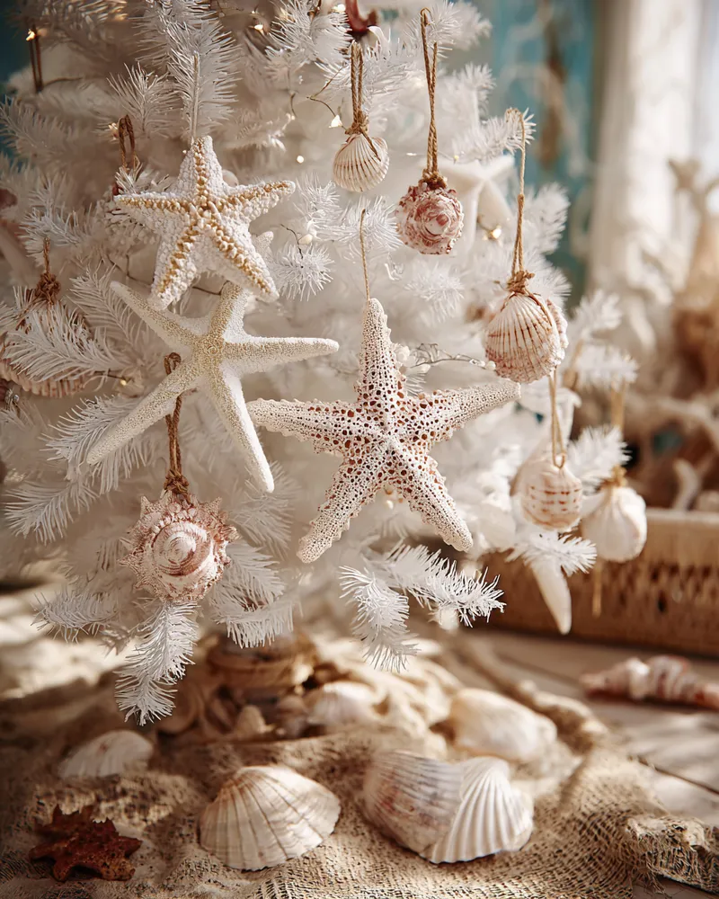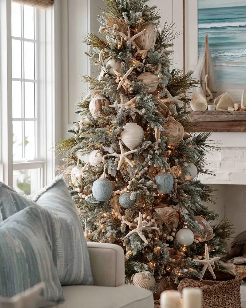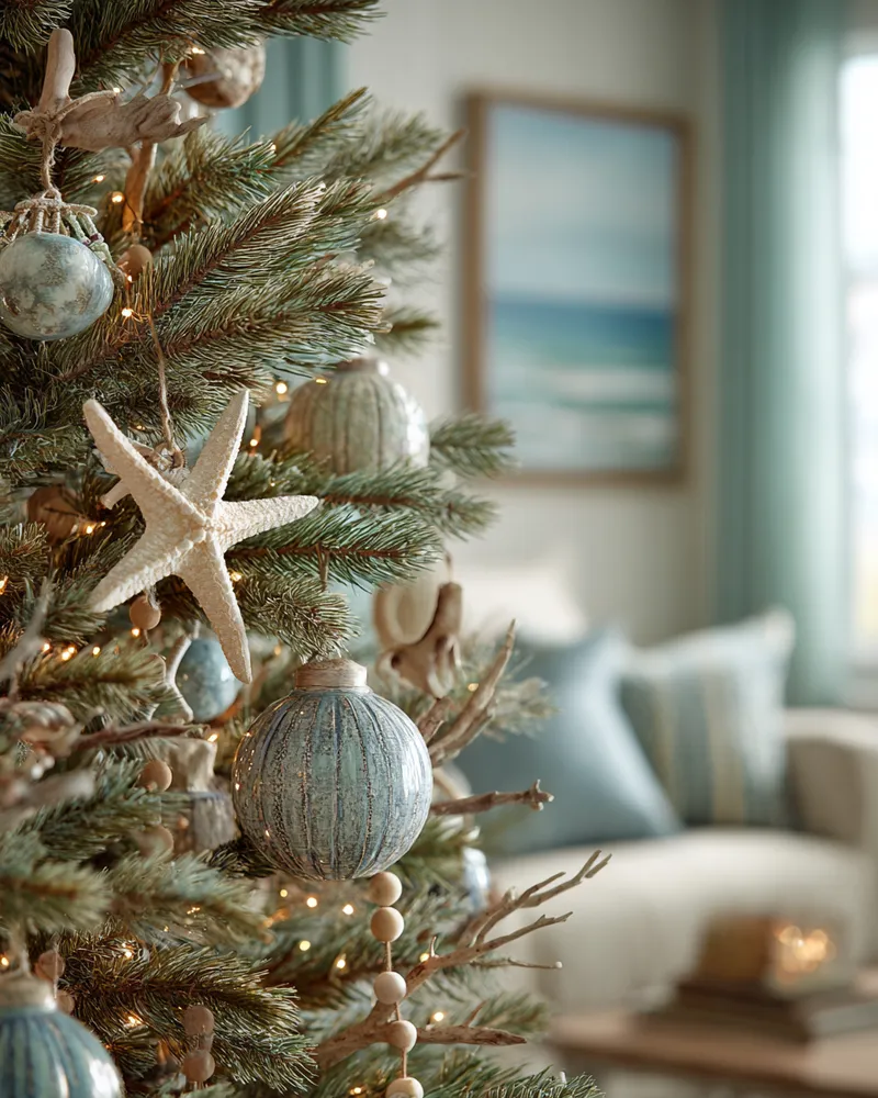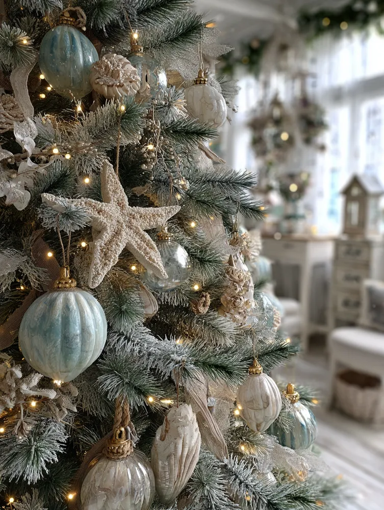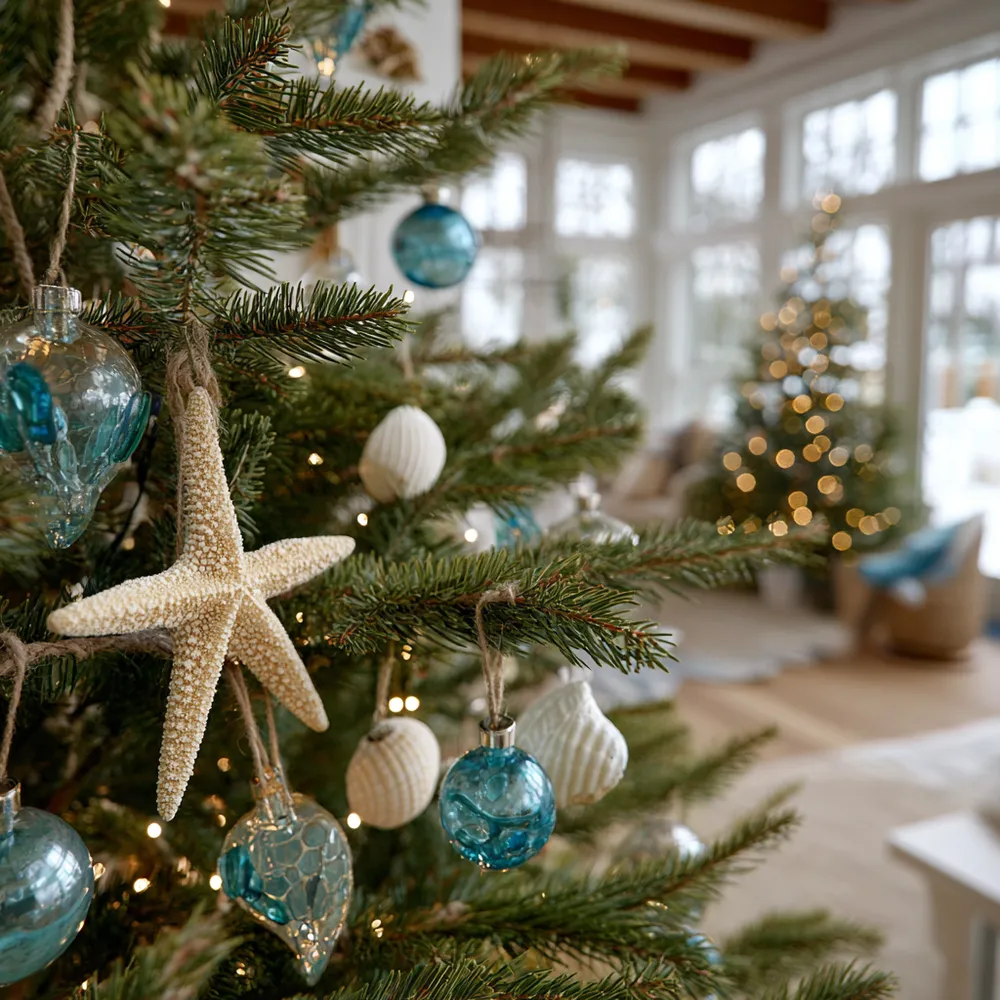 Thinking of decorating your Christmas tree with a coastal touch? It's all about achieving that light, airy, and tranquil feel! ๐ Embrace a palette that echoes the sea, sand, and sky for a unique holiday centerpiece.