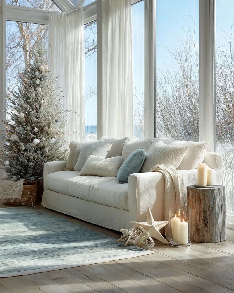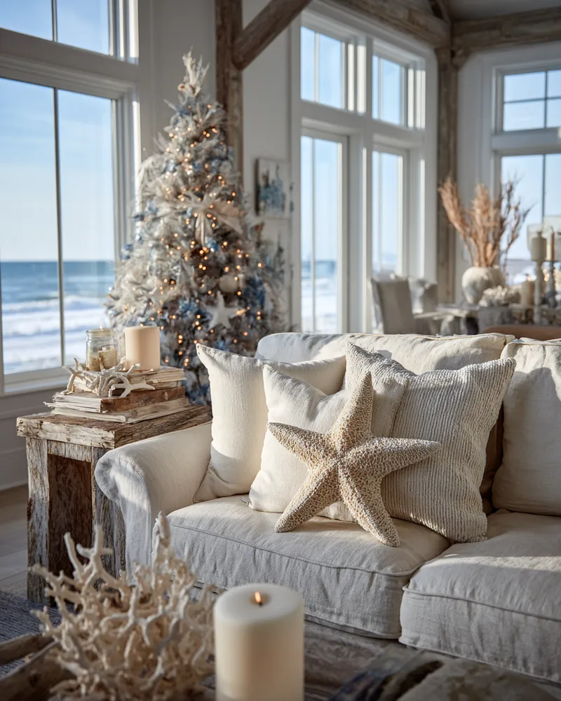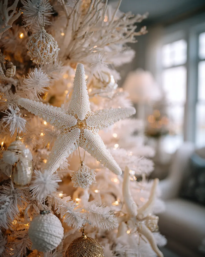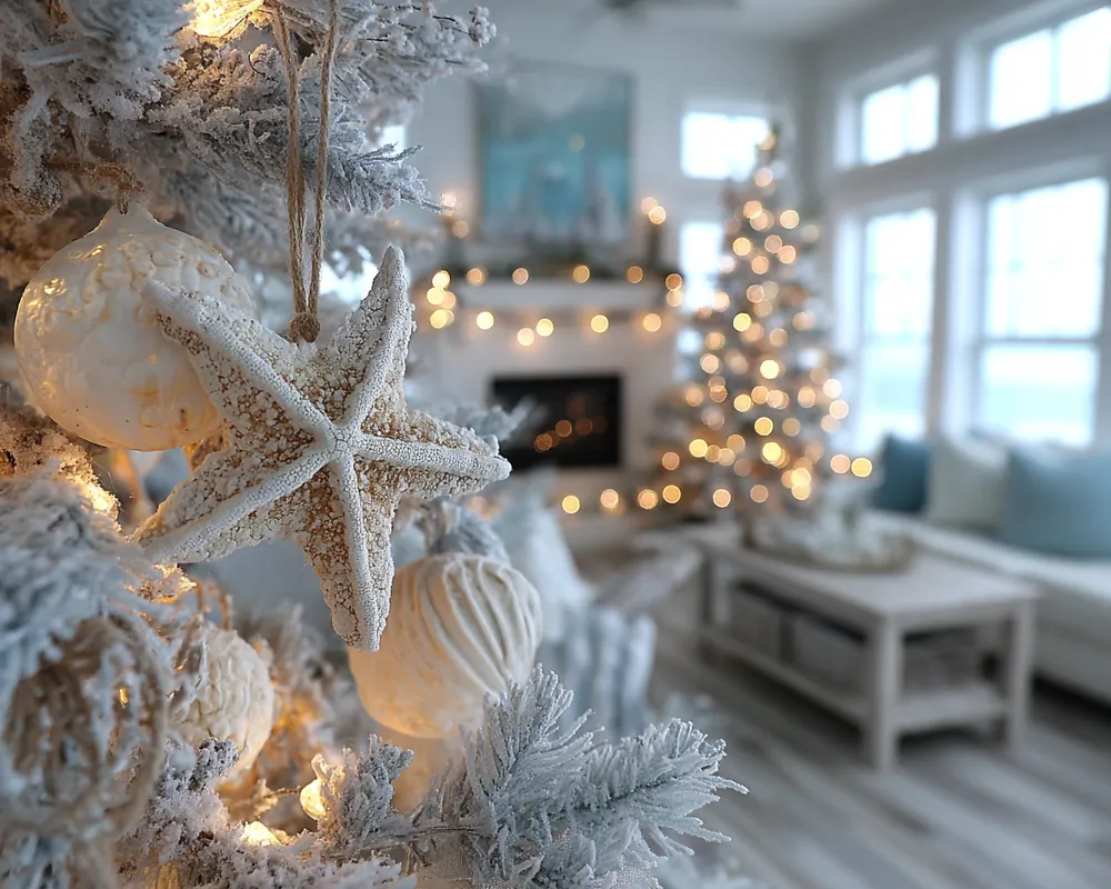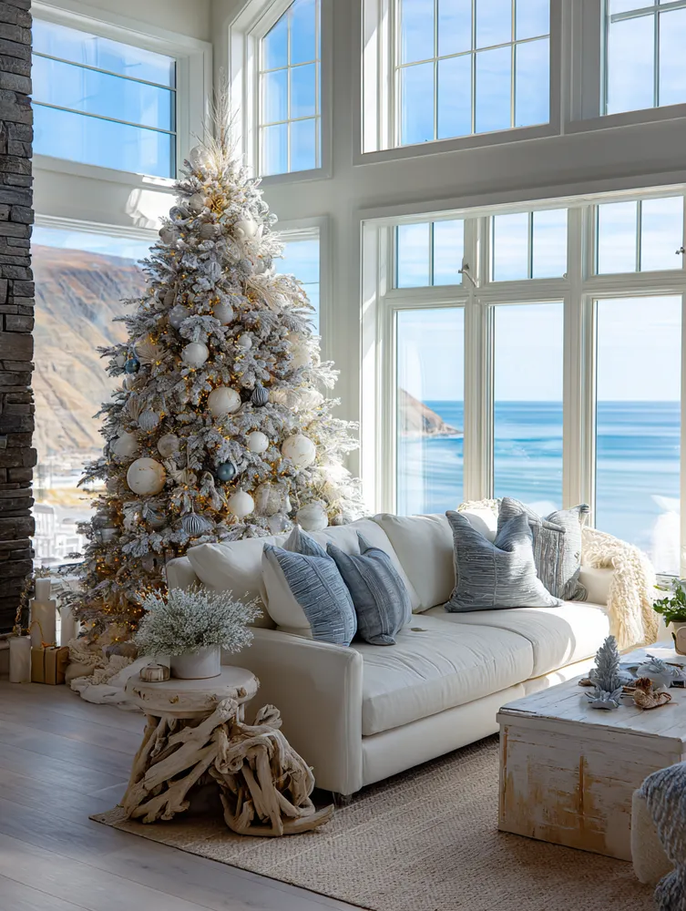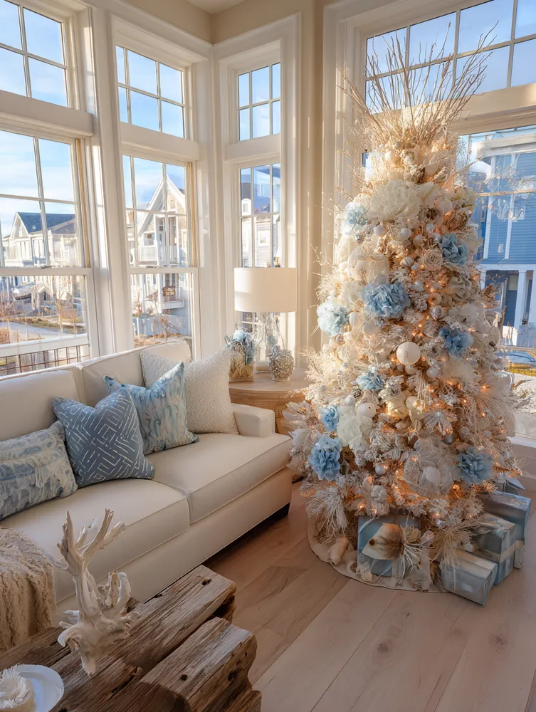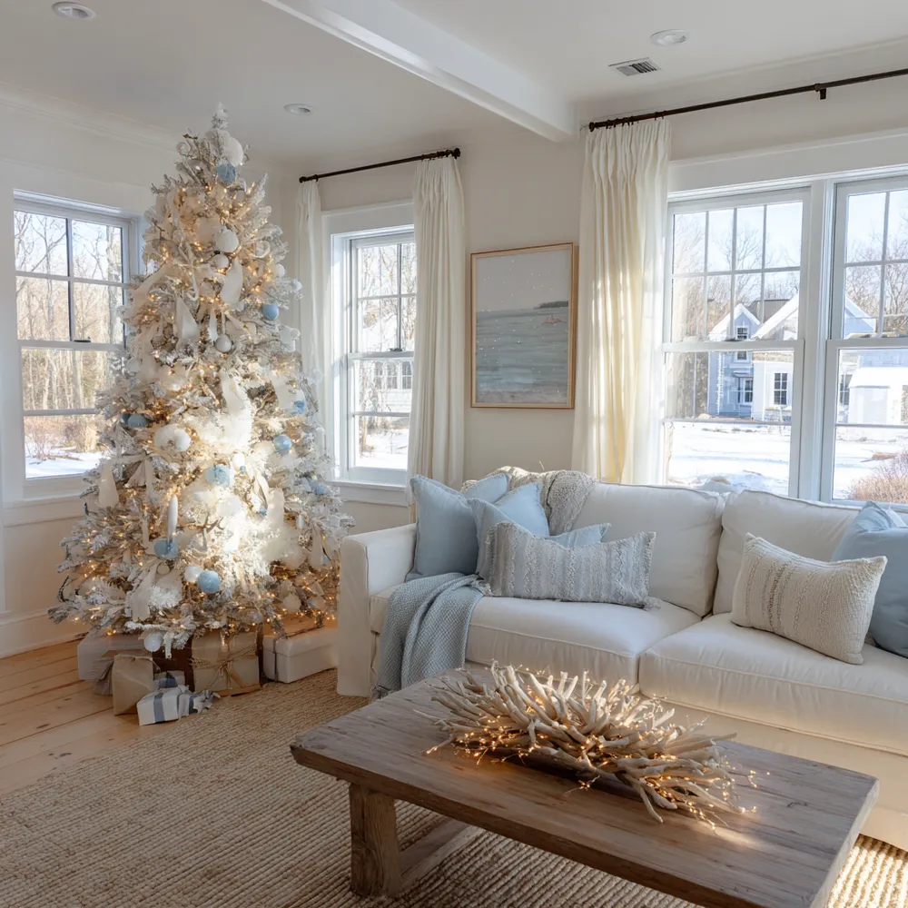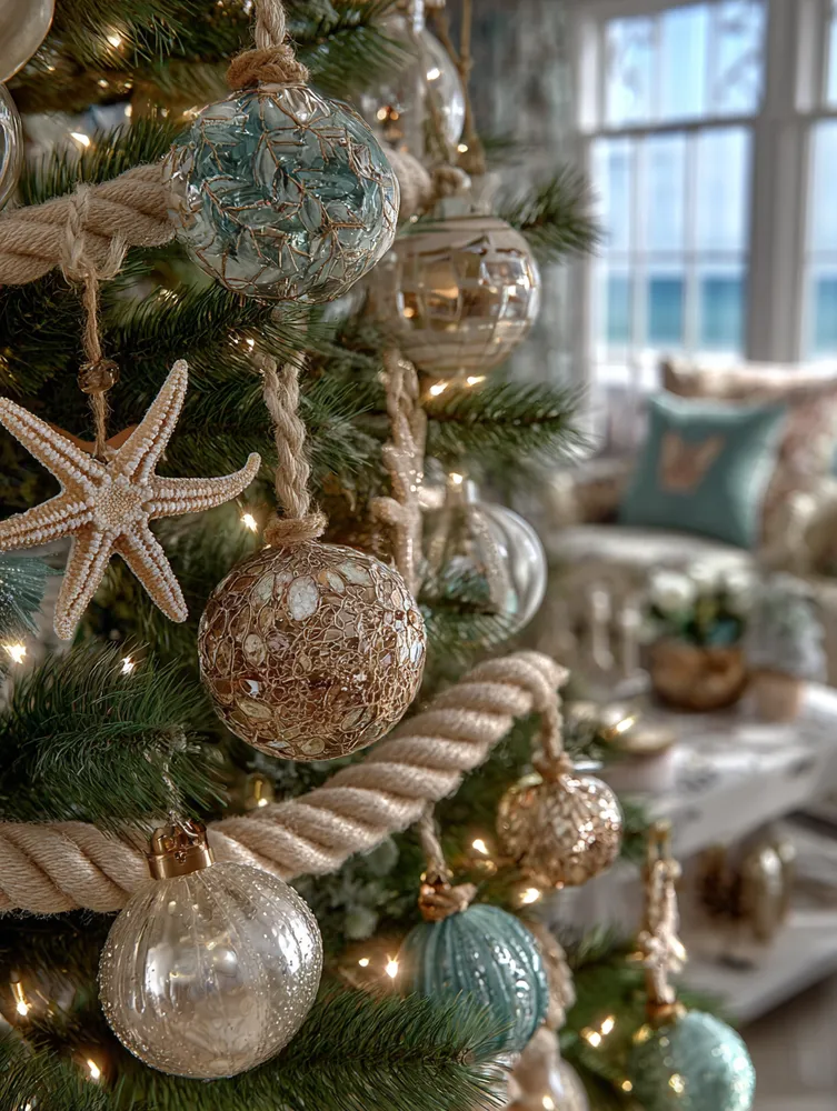 Thinking of decorating your Christmas tree with a coastal touch? It's all about achieving that light, airy, and tranquil feel! ๐ Embrace a palette that echoes the sea, sand, and sky for a unique holiday centerpiece.