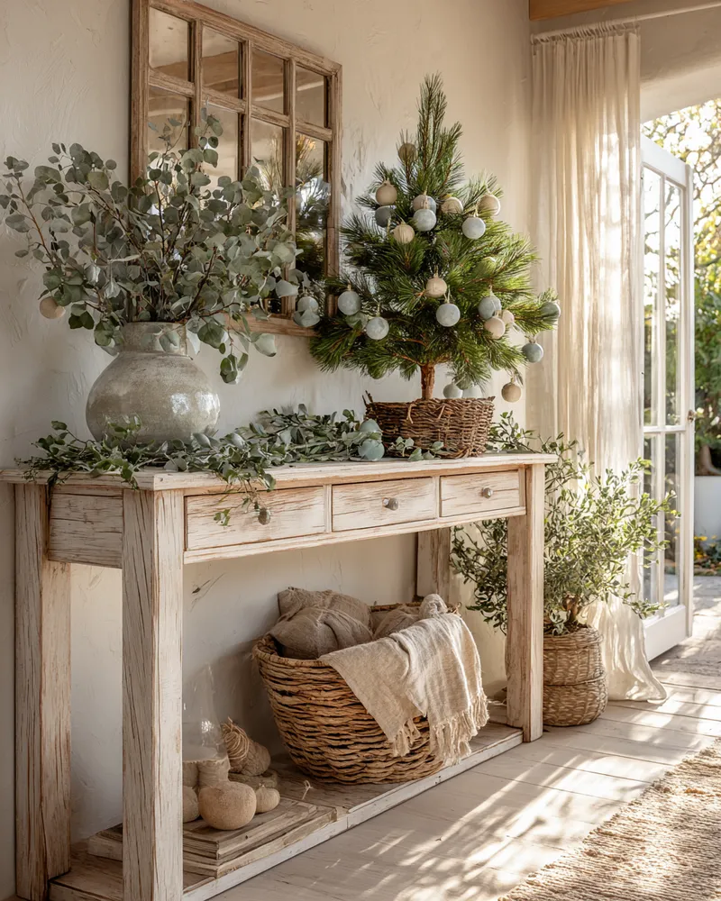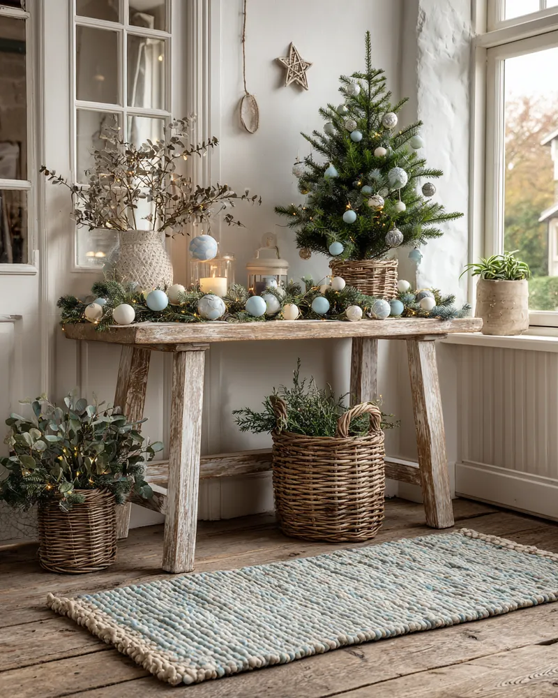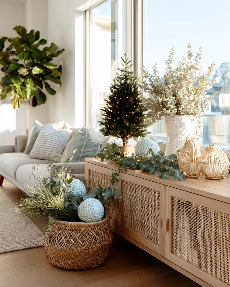 * Opt for ornaments in whites, creams, soft blues, and touches of natural wood