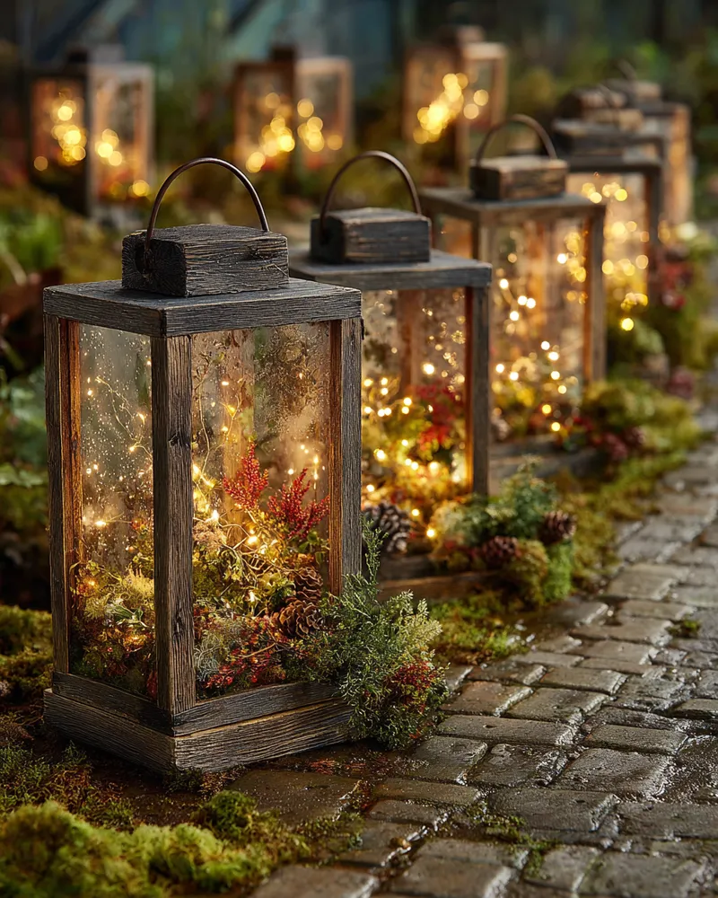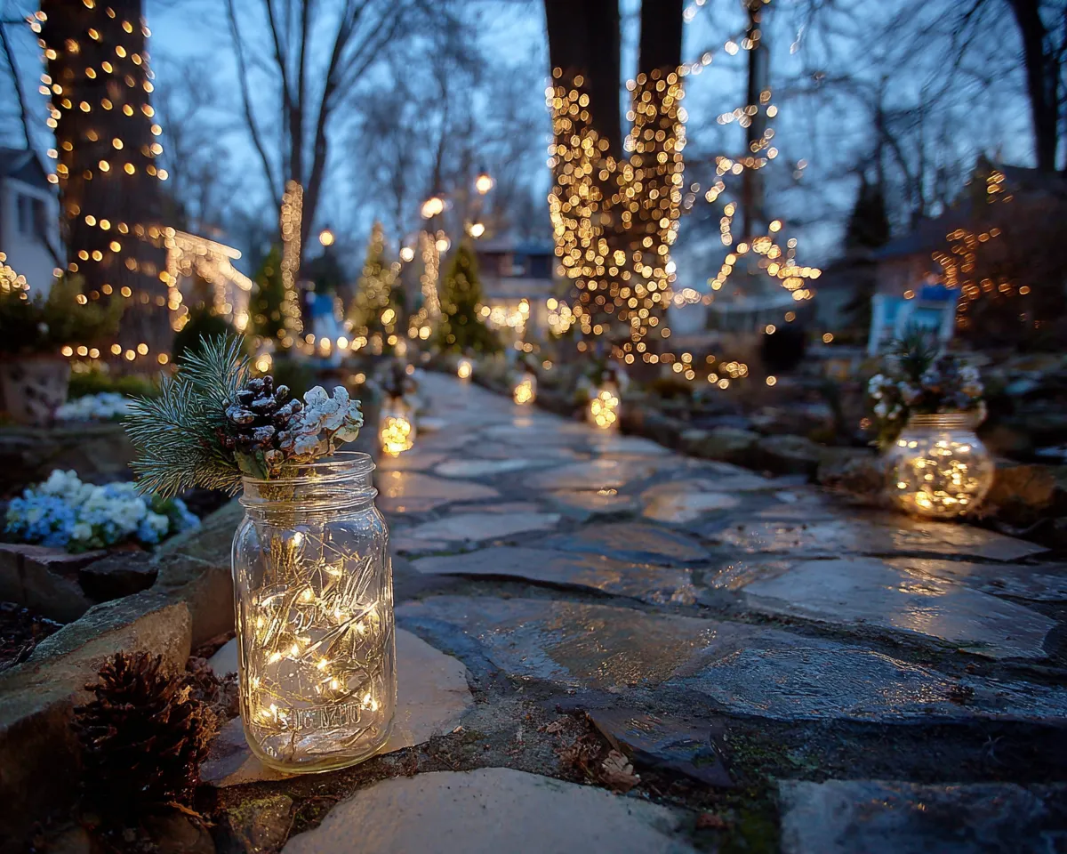 * **Mason Jar Lanterns:** Gather old mason jars, fill them with battery-operated fairy lights or LED tea lights, and hang them from tree branches or place them along pathways. You can even add a touch of festive greenery or Epsom salt for a snowy effect.