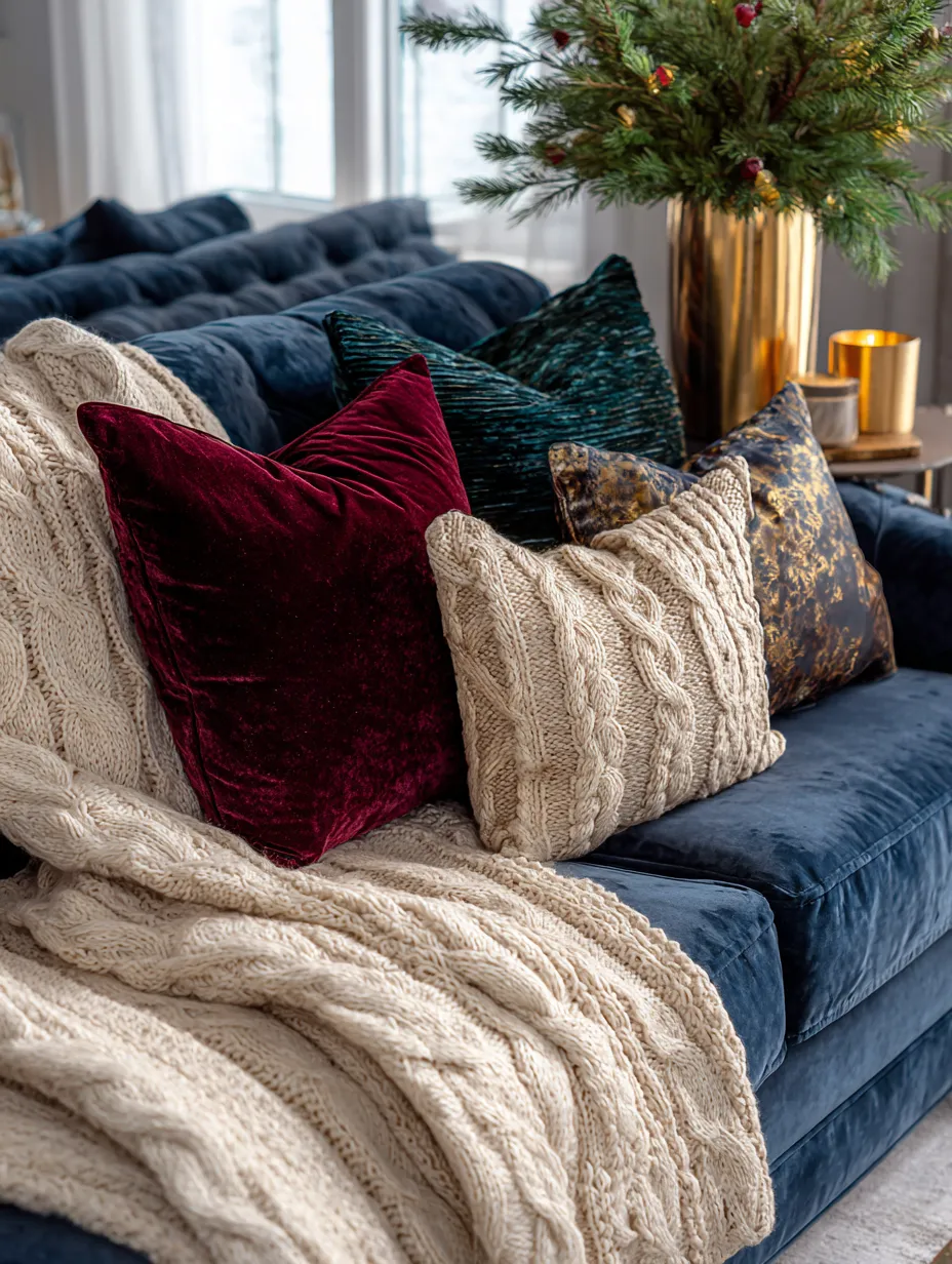 Cozy Up in Color: Velvet Christmas Sofa Styling 🛋️🎄