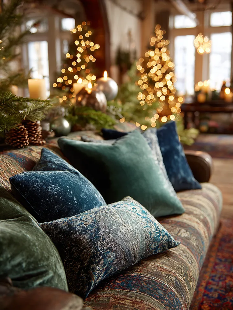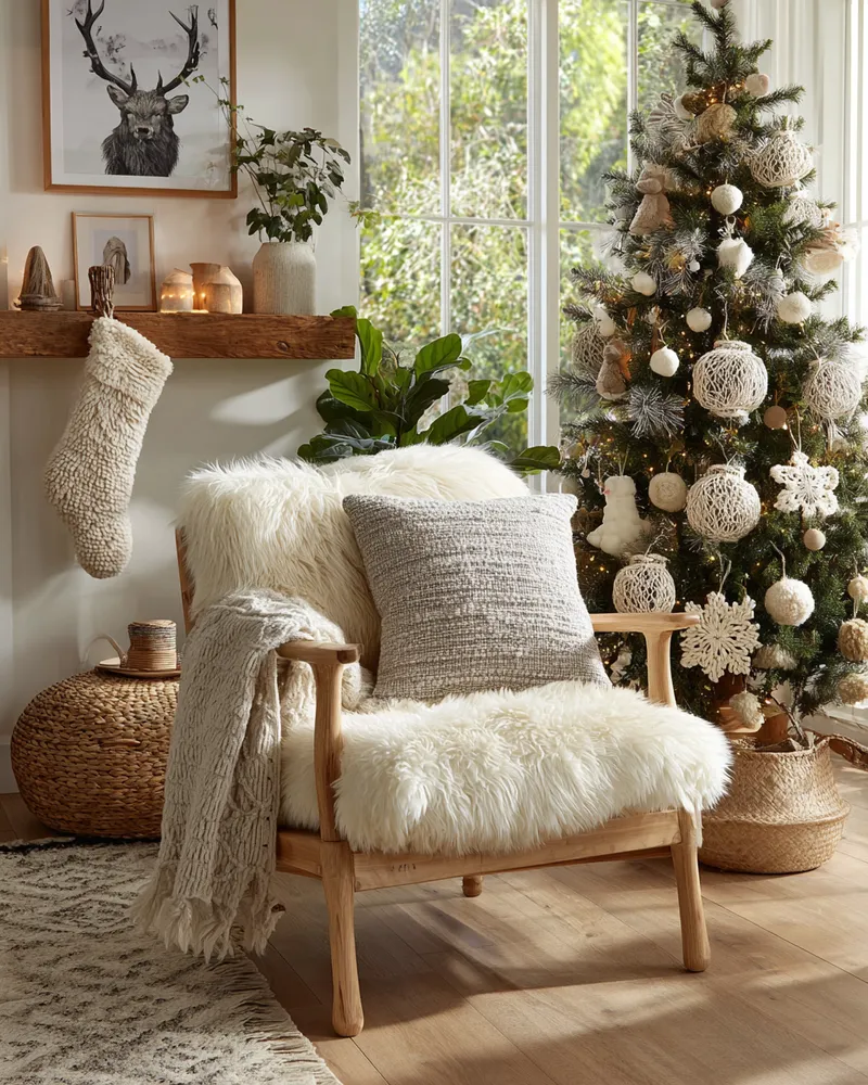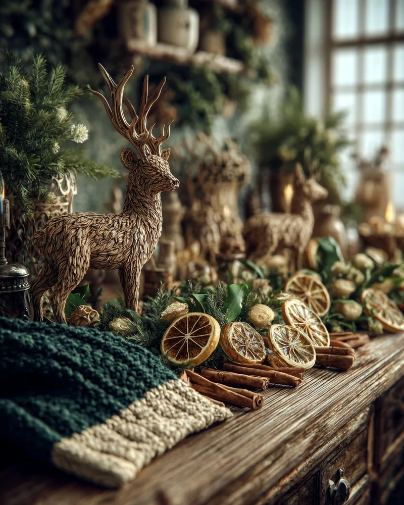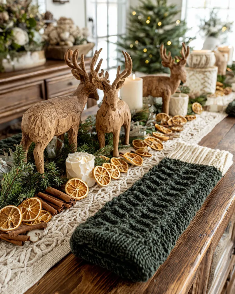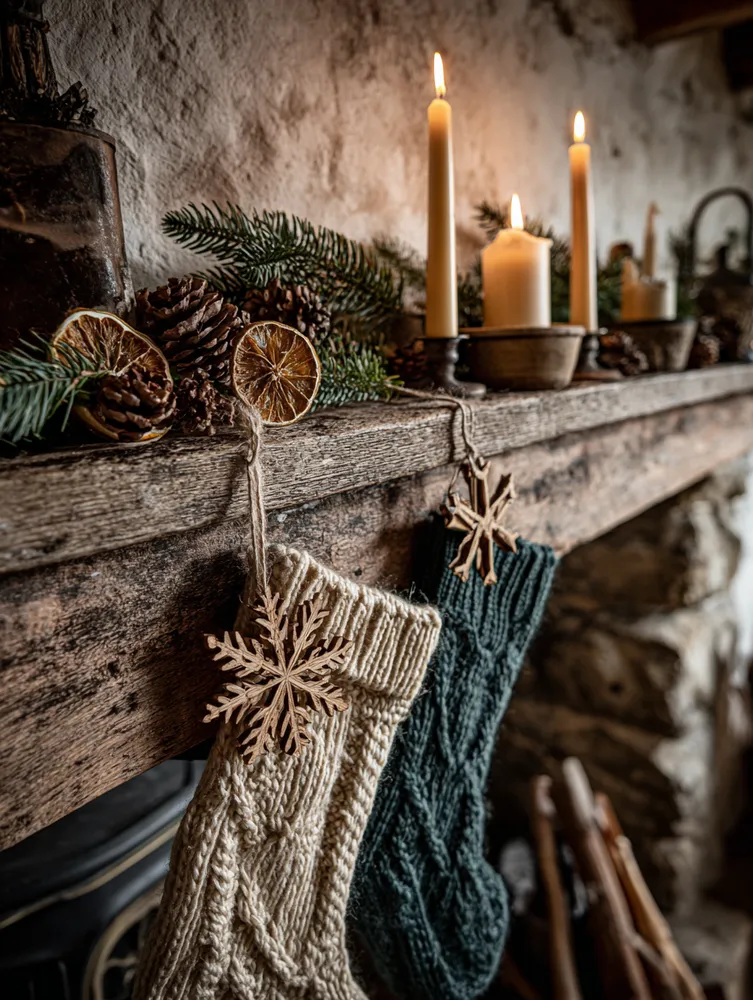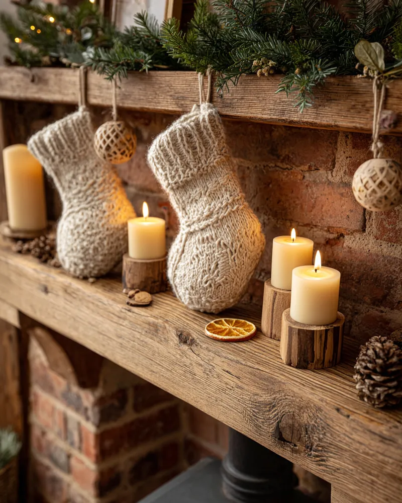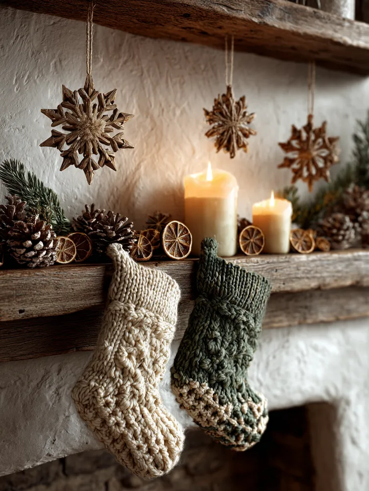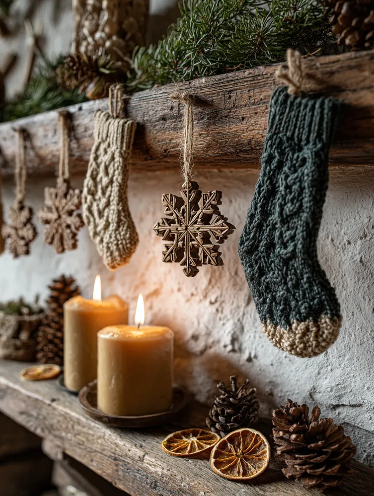 Imagine a mantelpiece adorned with hand-carved wooden ornaments and hand-knitted stockings. Or perhaps a bespoke wreath featuring dried botanicals and burlap. These elements create a rich, layered look that feels deeply personal and incredibly cozy. 🎅🏻