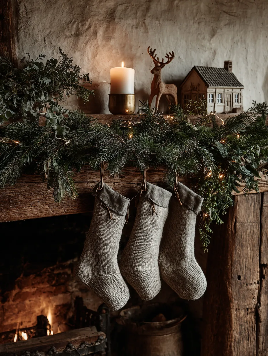 Focus on layering. Start with a base of fresh evergreen sprigs or a beautiful garland. Add dimension with handcrafted stockings in natural fabrics like linen or wool, and a mix of wooden and aged brass decorative elements. Fairy lights woven through the greenery add that magical sparkle.