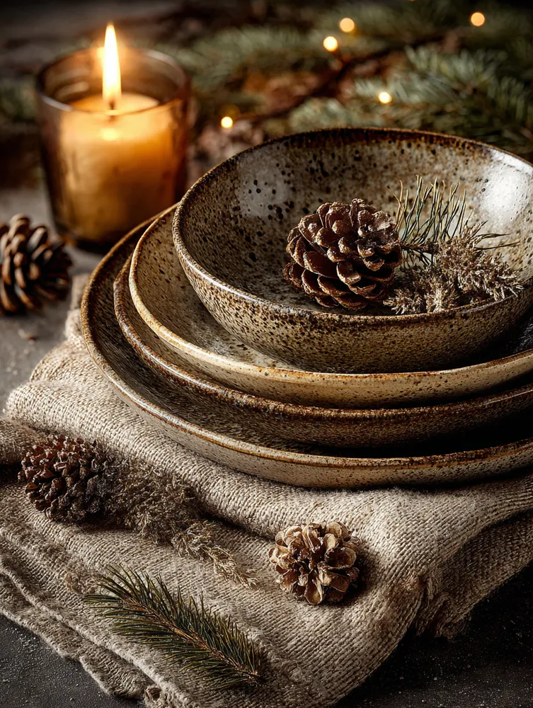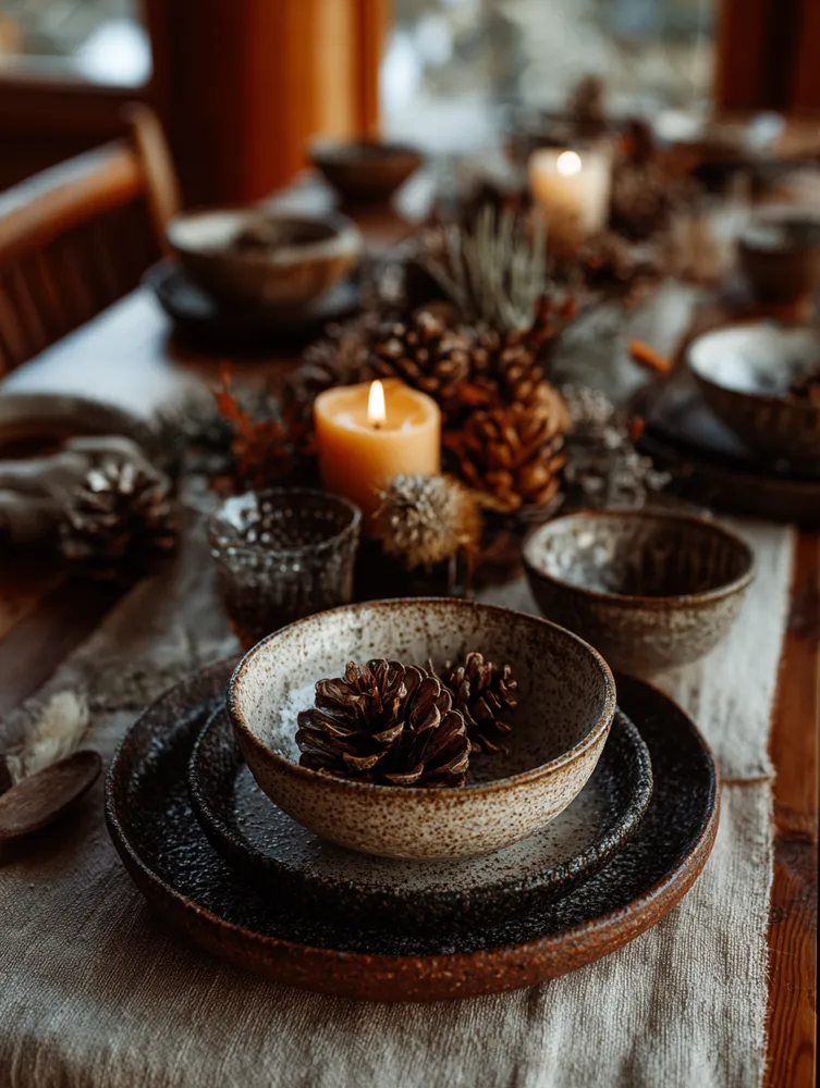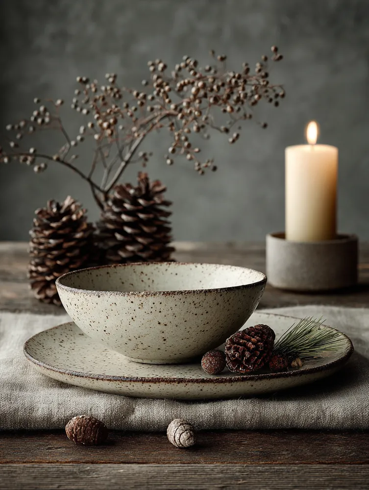 Wabi-Sabi Christmas Table Setting: Simple Elegance & Natural Beauty 🍄